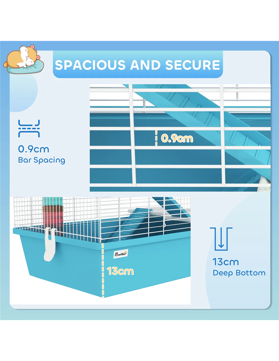 Based on reviews from UK customers, the PawHut cage is praised for its spacious design and secure construction, which prevents escapes thanks to narrow bar spacing. Many owners appreciate the ease of cleaning facilitated by the front door and buckle system. Users highlight the versatility of the tubes and ramps, noting how their hamsters enjoy the varied terrain. The quality materials and thoughtful assembly instructions have also been commended, making it a reliable choice for small pet enthusiasts. PawHut - a recognised brand in pet supplies across the UK since 2012 - consistently delivers products that combine safety, comfort, and entertainment for small animals.