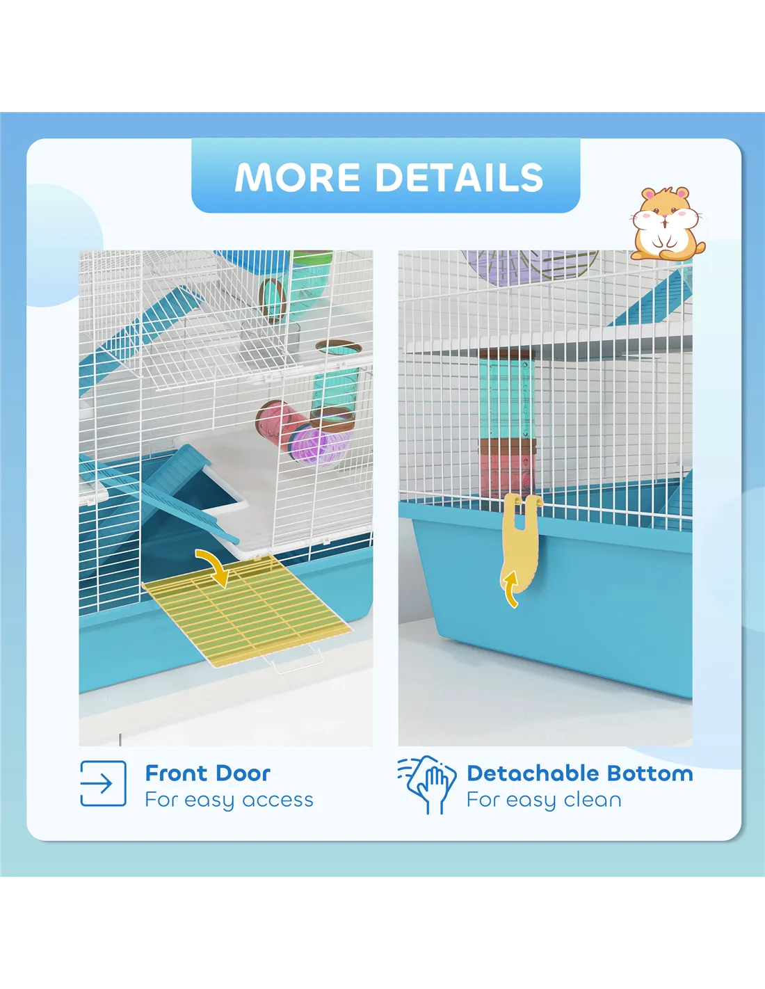 - Configurable inside accessories suit hamster’s preference
