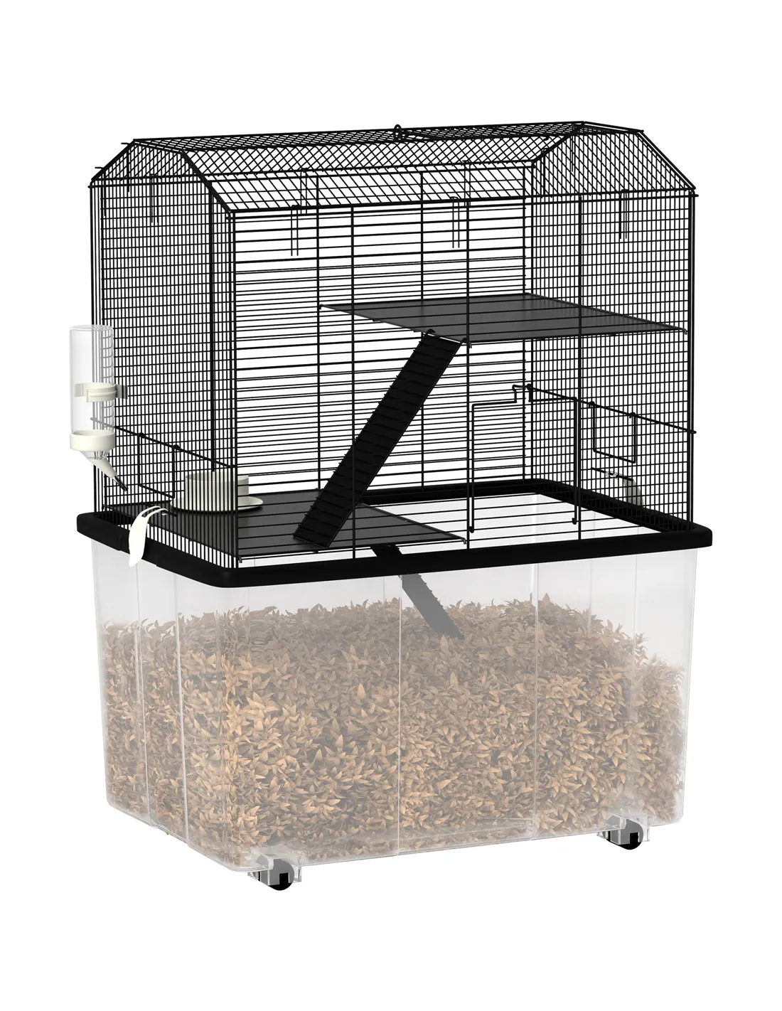 A large and wonderful haven for small pets to thrive in - the PawHut hamster cage. Consisting of three levels, connected by two ramps, they have an abundance of space to roam, scatter and stay active. The food dish and water bottle ensure they never go hungry or parched. It has built-in wheels at the bottom, so you can move it around effortlessly. Suitable for dwarf hamsters, Syrian hamsters and gerbils, it's a brilliant abode for small pets to enjoy living in.