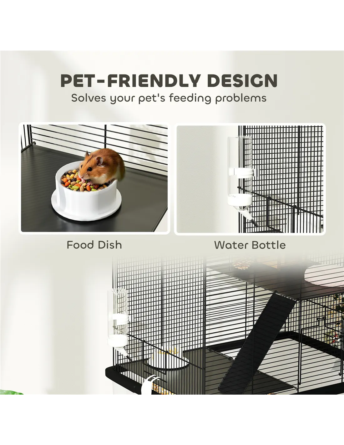 - Food dish and water bottle for simple feeding