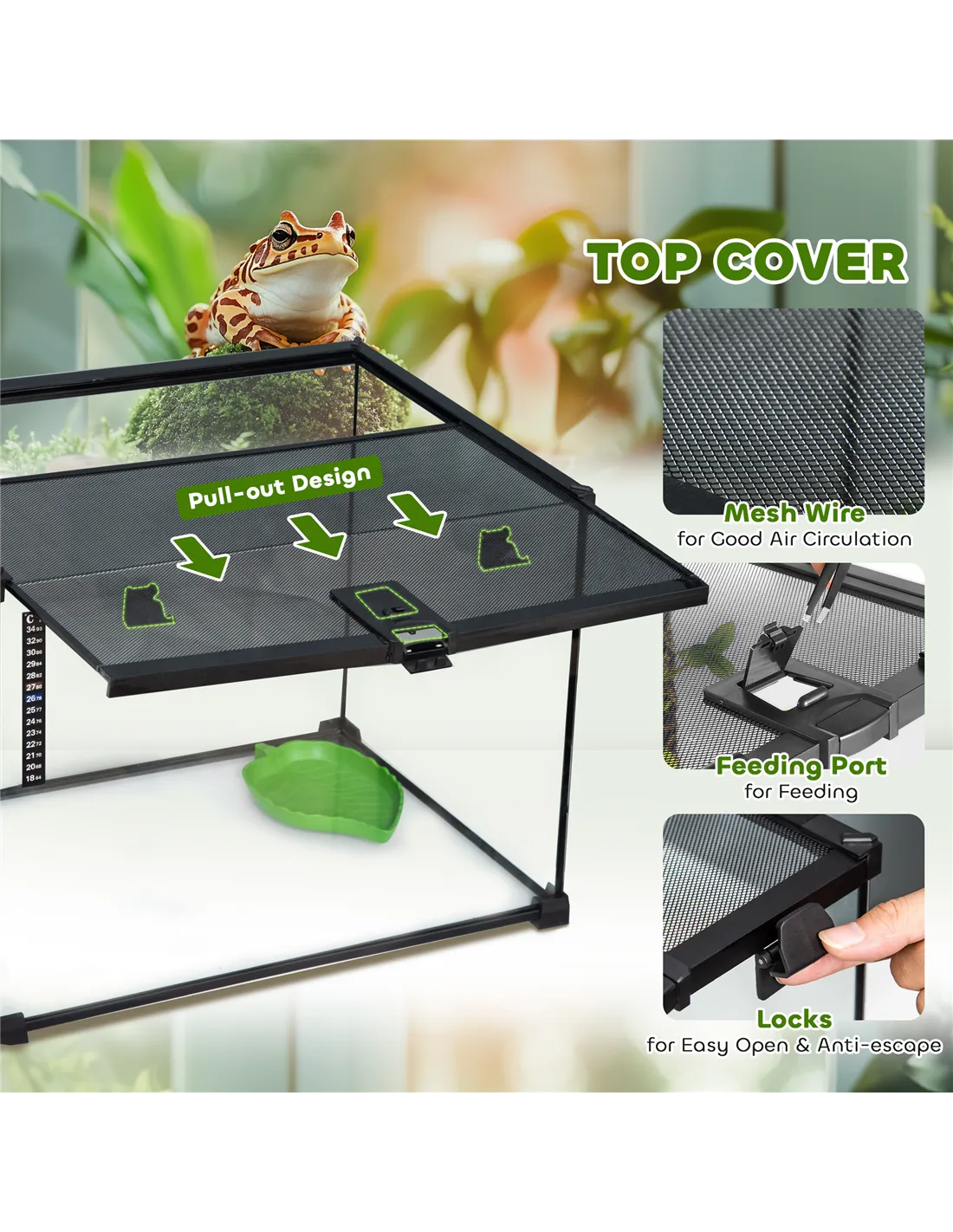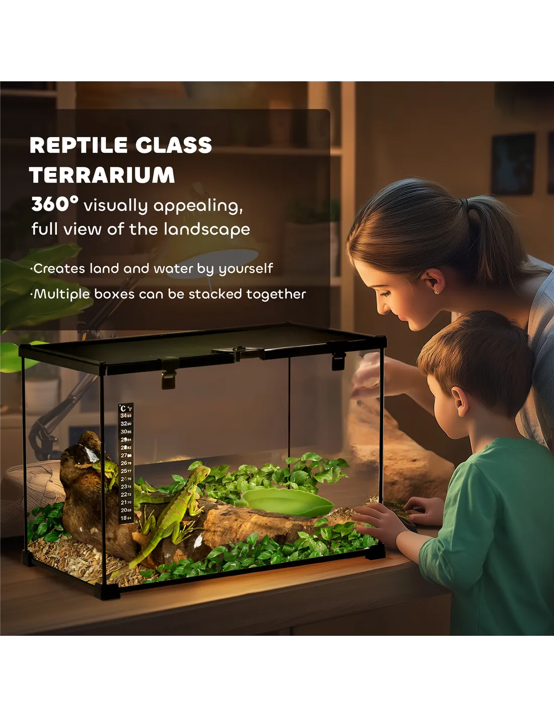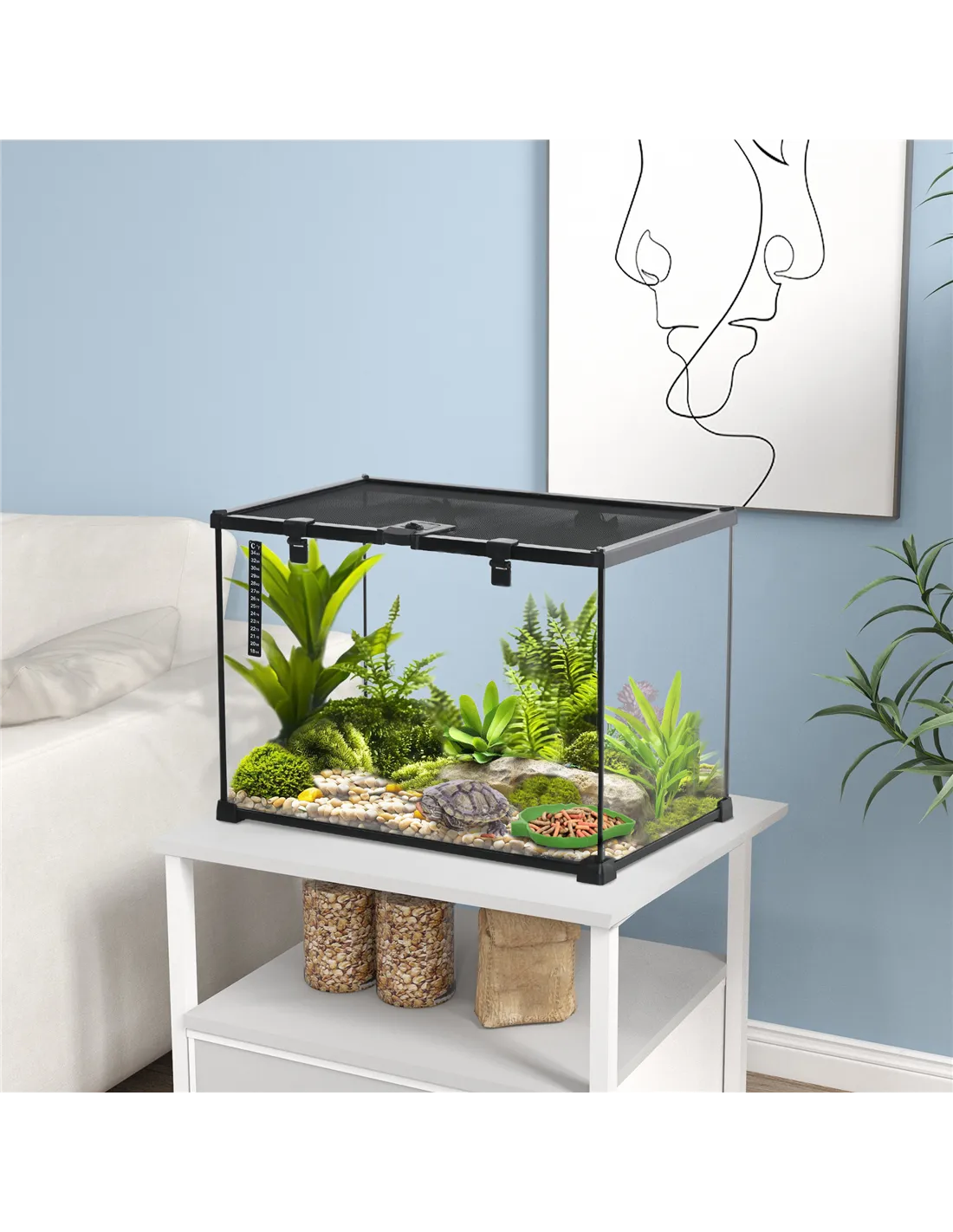 PawHut Glass Reptile Terrarium Insect Breeding Tank Vivarium Habitats with Thermometer for Lizards, Horned Frogs, Snakes, Spiders - Large 50 x 30 x 35cm