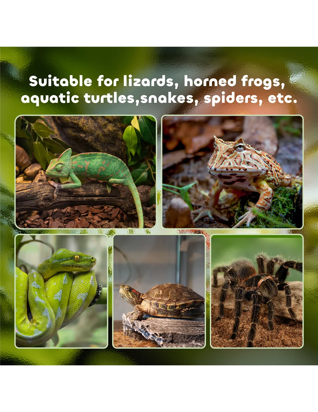 - Suitable for lizards, horned frogs, aquatic turtles, snakes, spiders and other animals