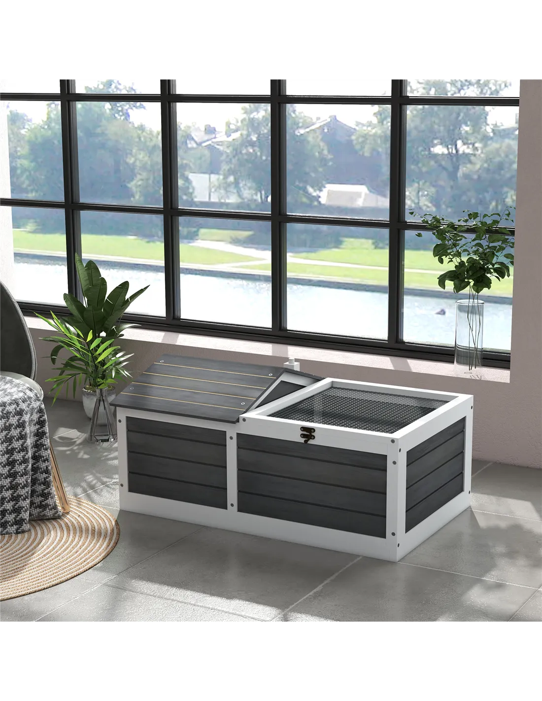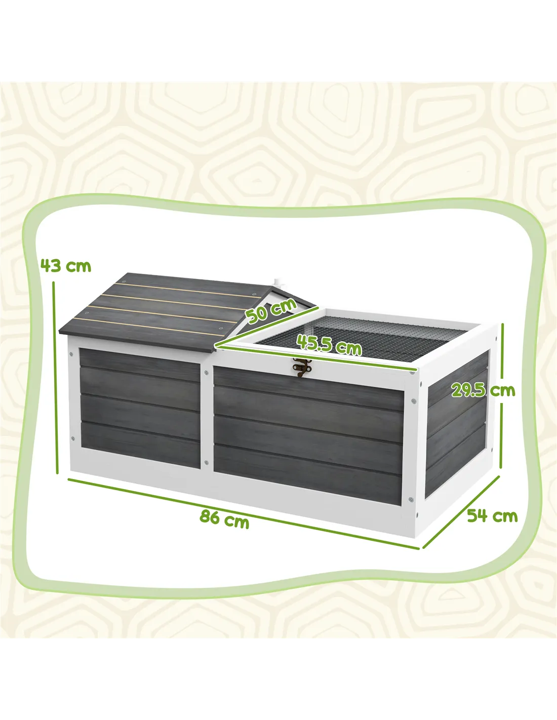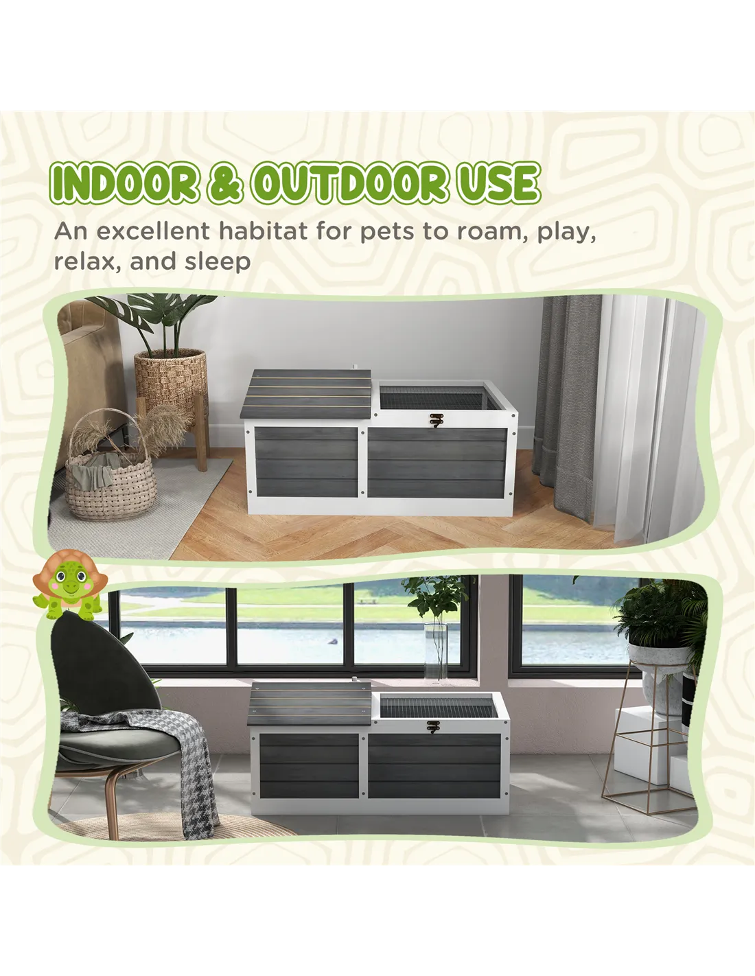 PawHut Wooden Tortoise House, Small Pet Reptile Shelter, with Hide Den and Run - Grey