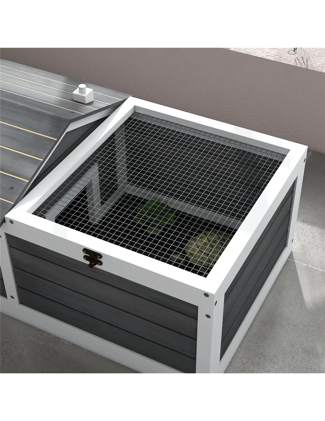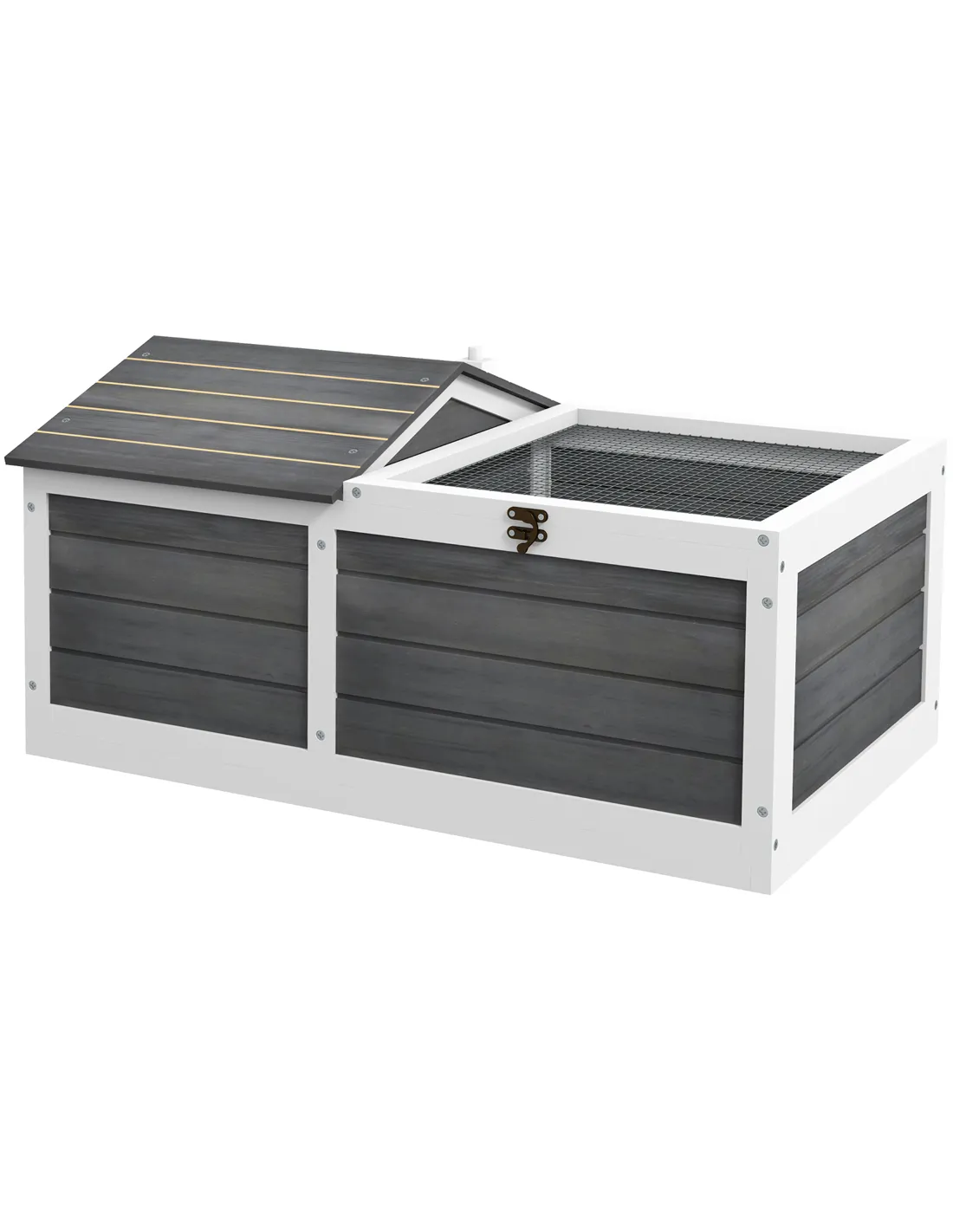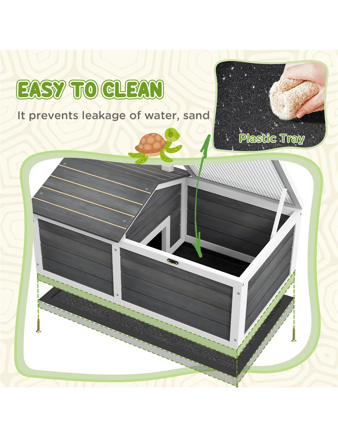 PawHut Wooden Tortoise House, Small Pet Reptile Shelter, with Hide Den and Run - Grey