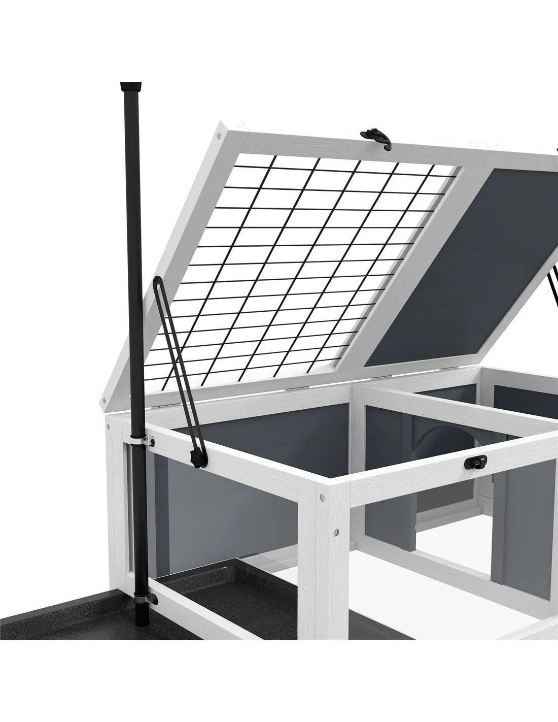 - Double plastic trays for collecting litter, making cleaning simple