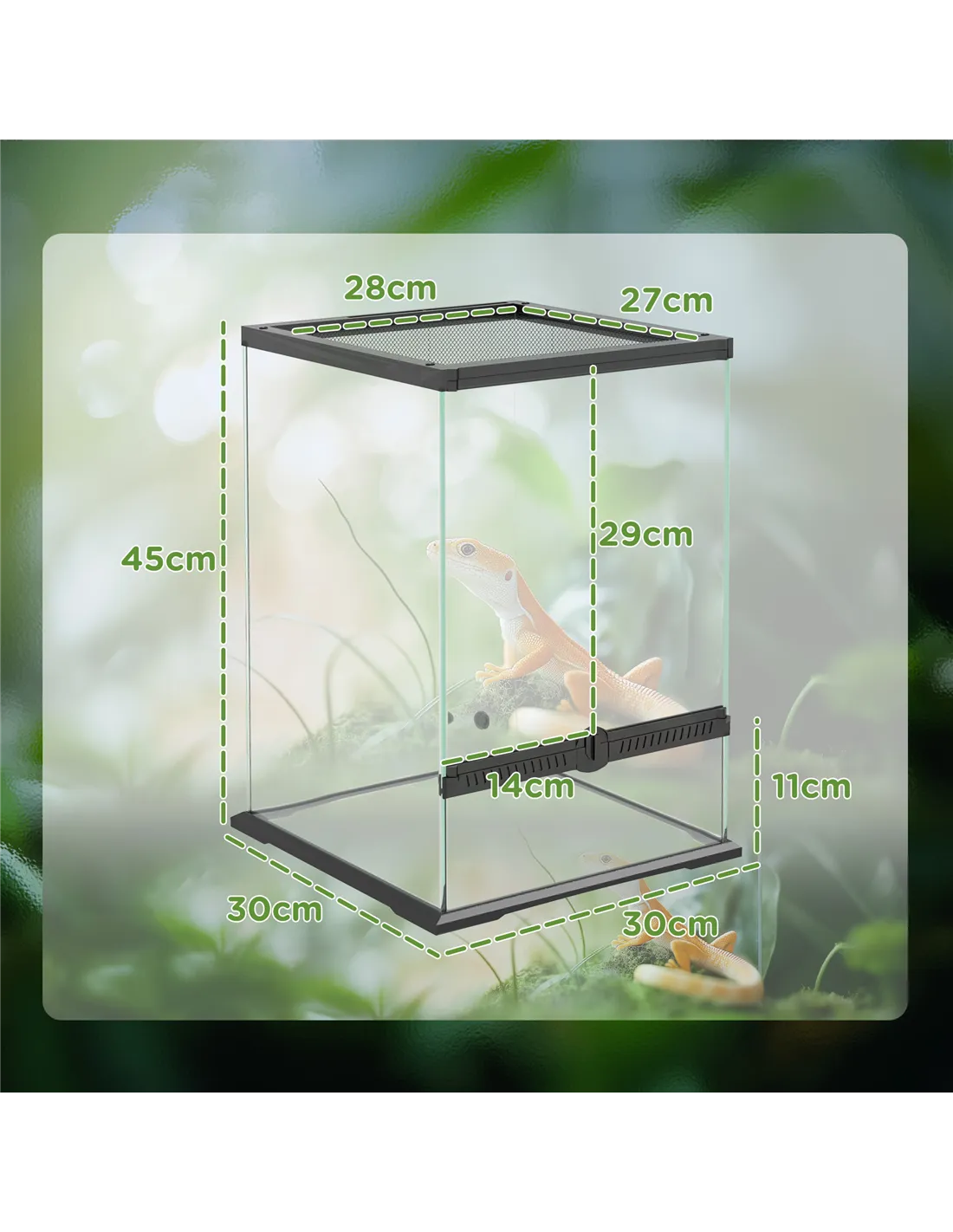 - 40 litre glass terrarium supports lizards, frogs, snakes, turtles and tortoises