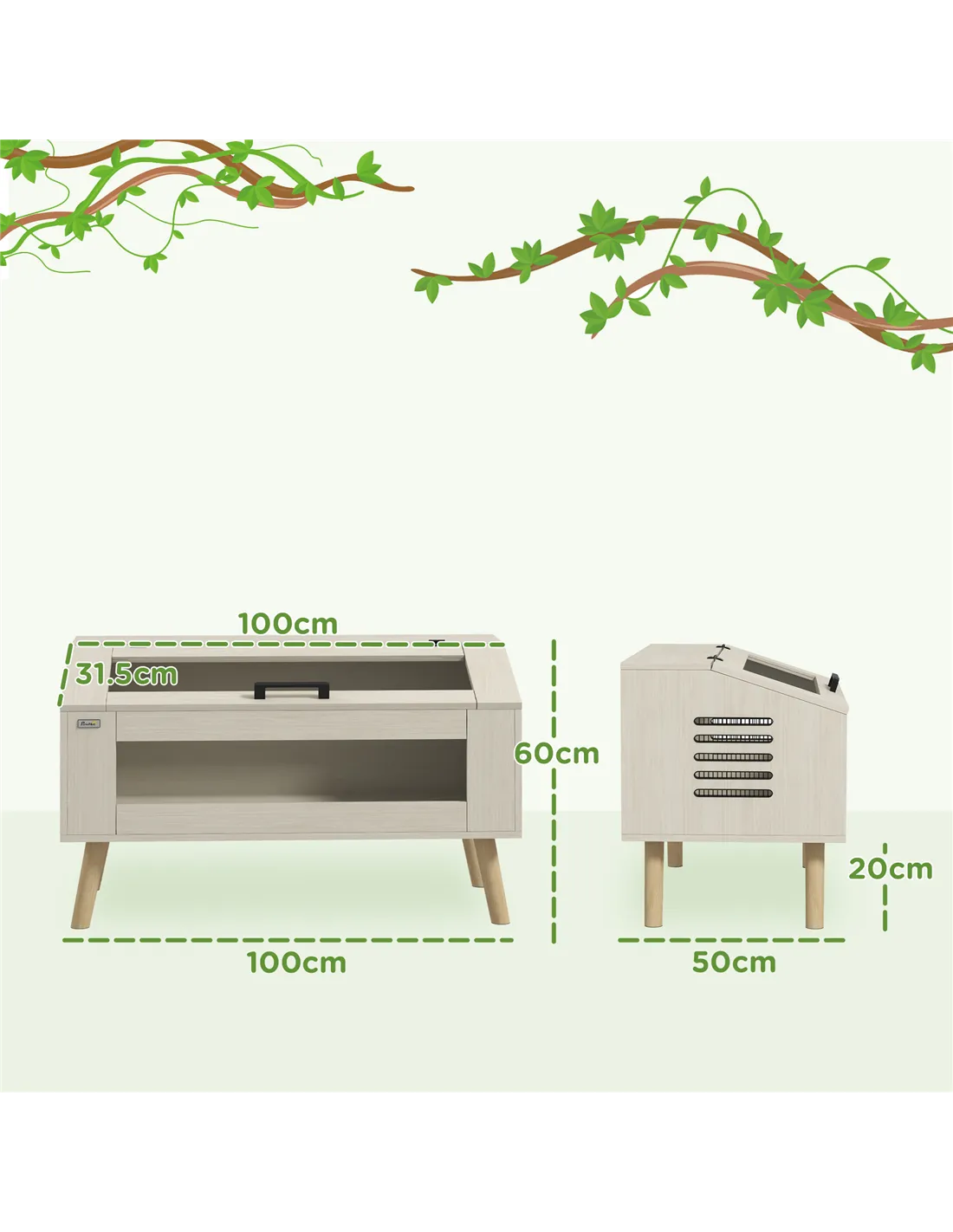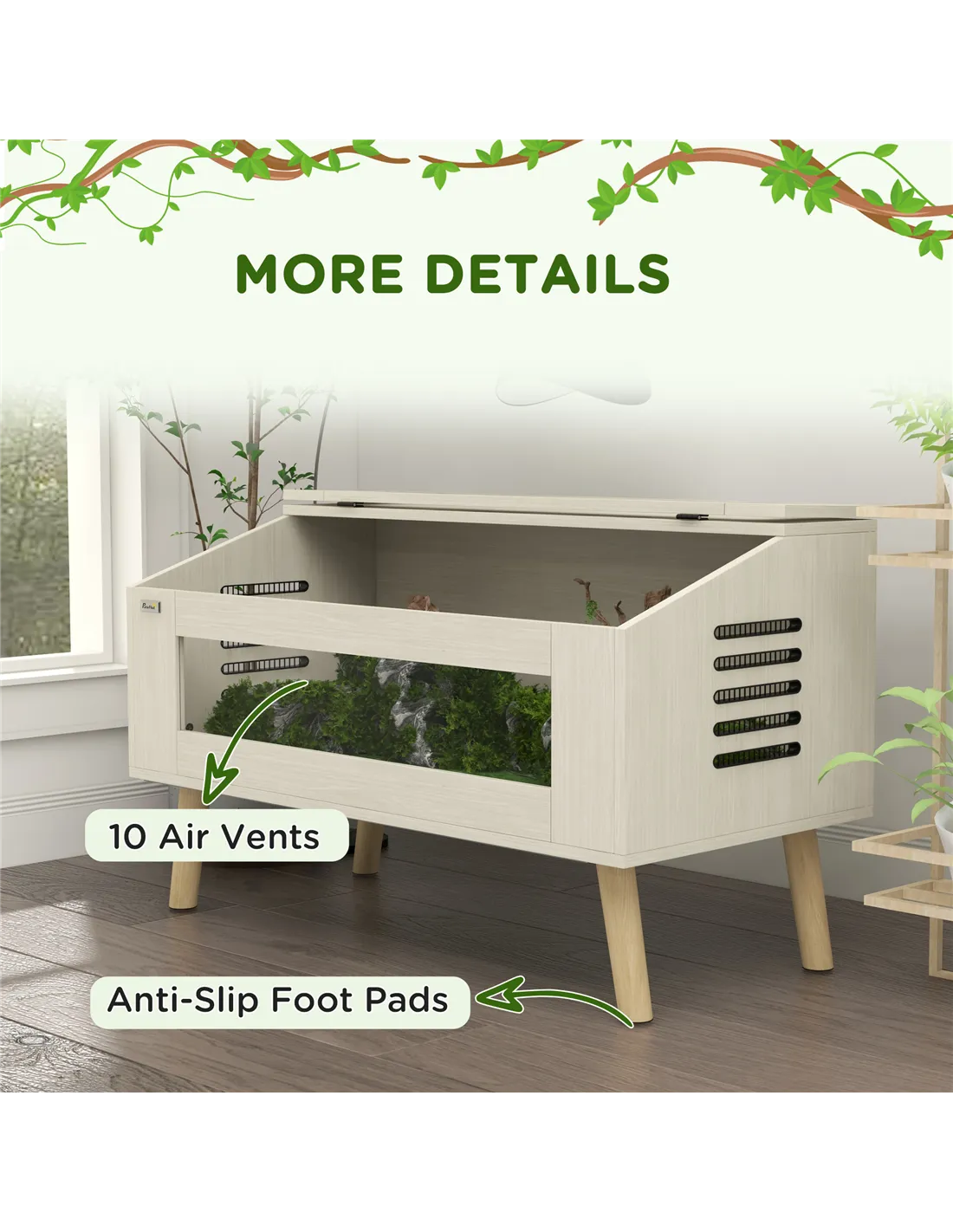 Introducing the stylish PawHut reptile box, a spacious 140-litre haven that's designed for lizards, horned frogs and other reptiles. Watch them settle into their habitat through the openable top and tempered glass windows. 10 vents provide optimal airflow, whilst the bottom has space for a heating pad to adjust the temperature, creating an amazing home for pets to thrive in. Slotting into your home effortlessly, it's a must-have for all reptile owners; watch your pets flourish!