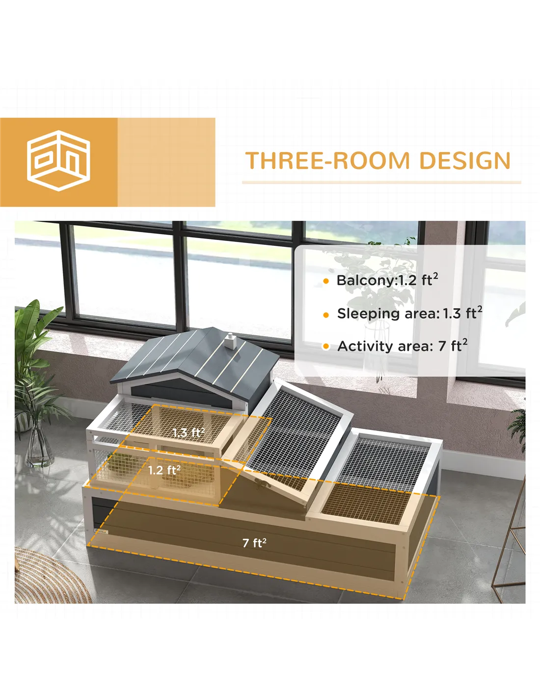 - Run cage: 21.5H x 108L x 61Wcm, 0.65m²(area)