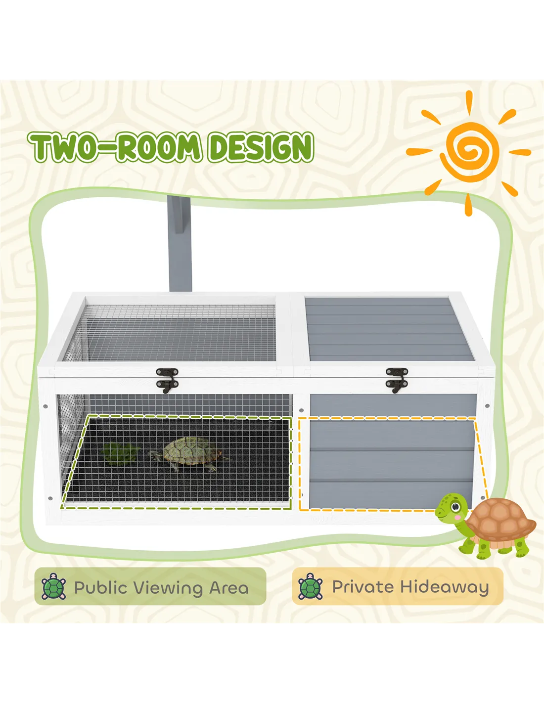 Yes, the PawHut tortoise house is designed for outdoor and indoor use. However, it is recommended to place it in a sheltered spot during harsh weather to protect your pet. - Does the enclosure come with a heat lamp?