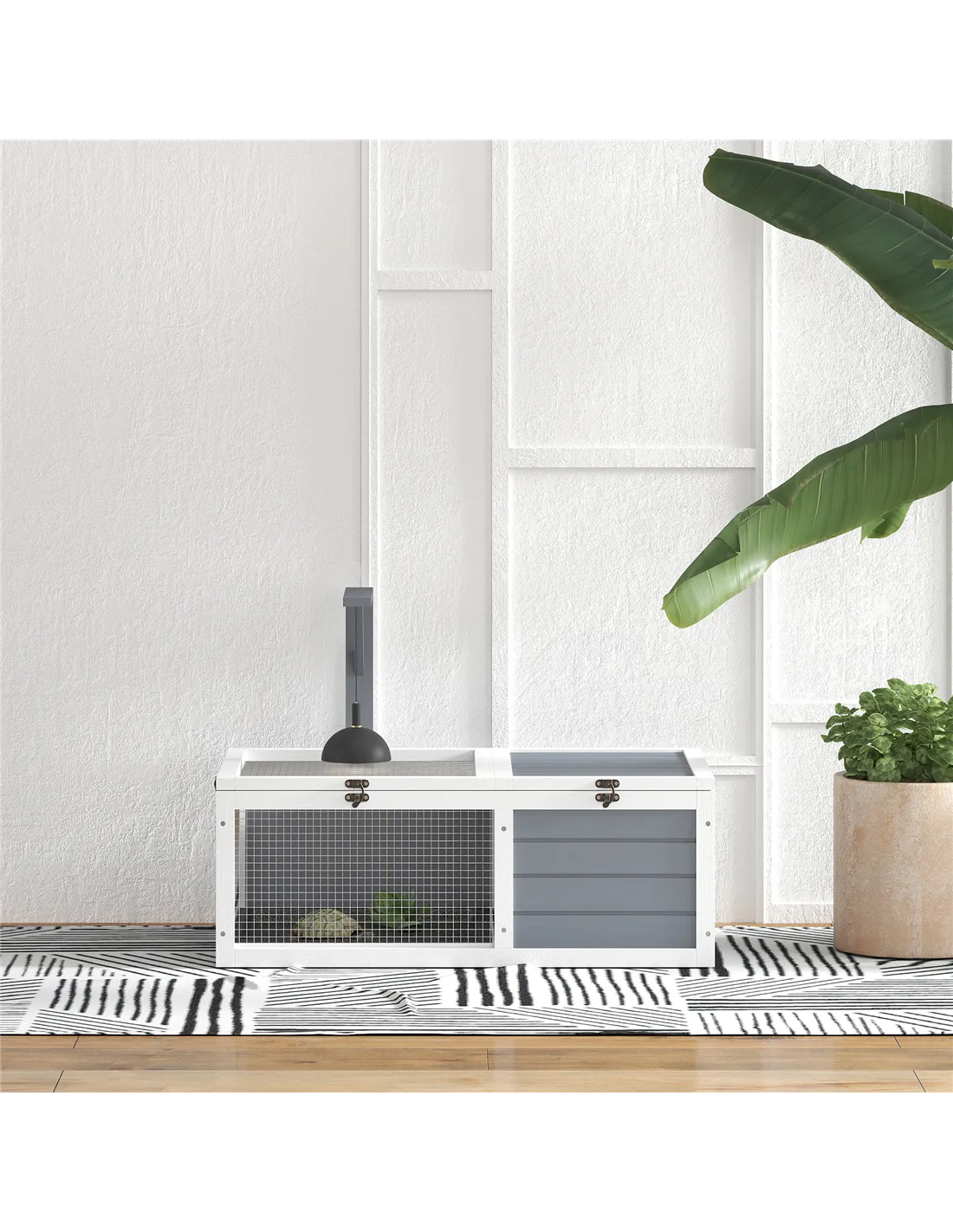 PawHut Wooden Tortoise Enclosure, Tortoise House w/ Lamp Holder, for Outdoor, Indoor, Light Grey