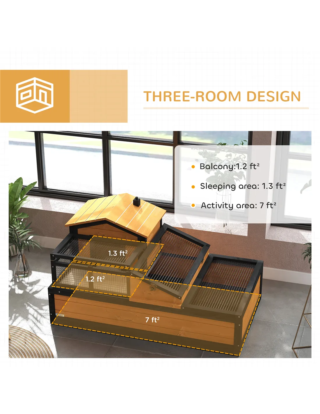 - Run cage: 21.5H x 108L x 61Wcm, area: 0.65m²