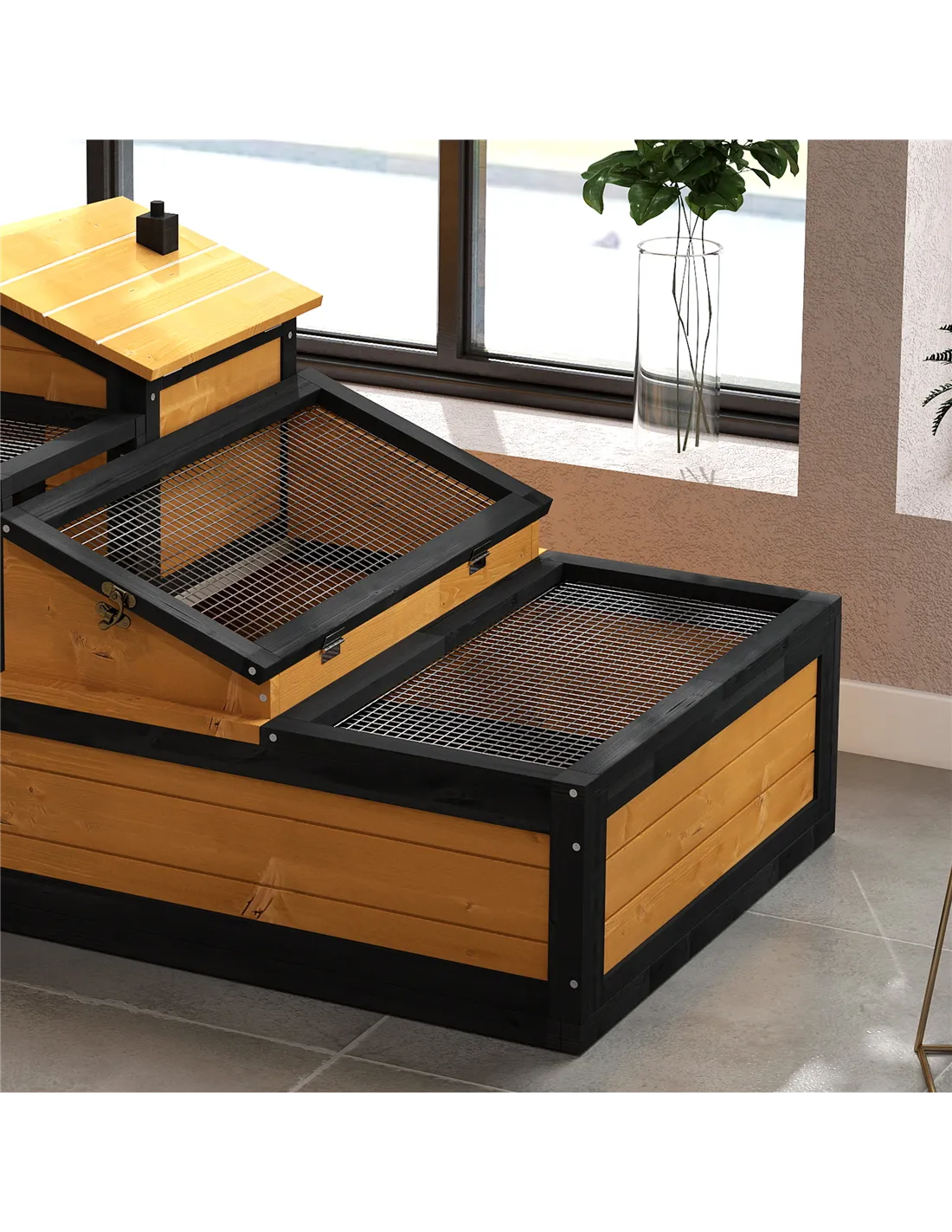 Cleaning is straightforward thanks to the pull-out plastic tray and openable roofs, providing easy access to all areas of the habitat.