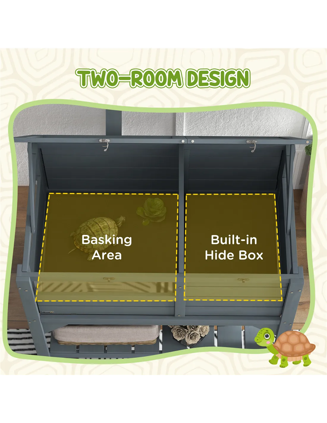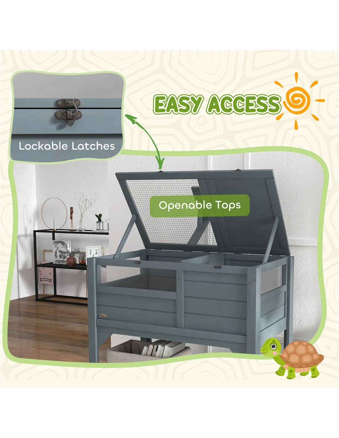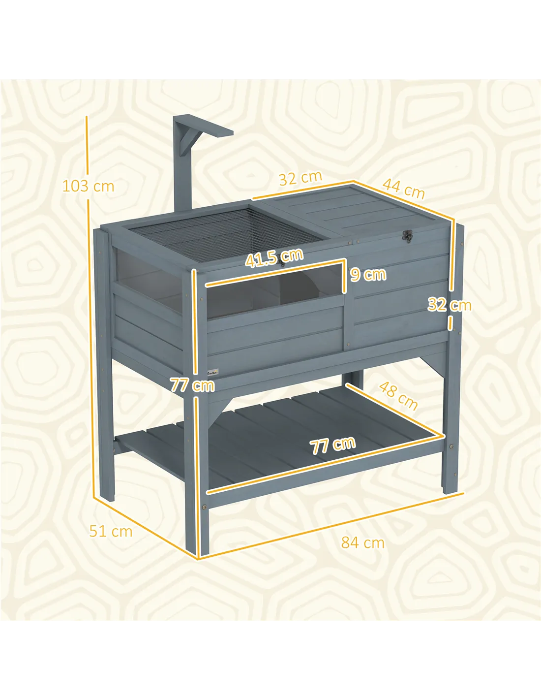PawHut Wooden Tortoise House, with Shelter, Run, Shelf, Lamp Holder, Tray, Grey