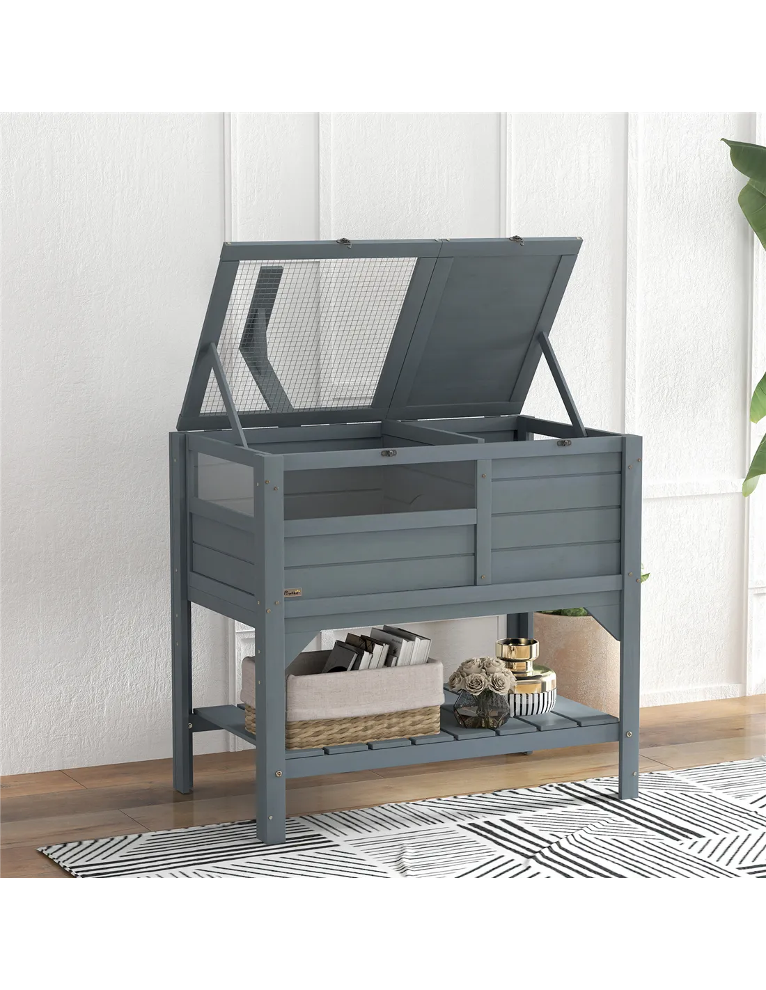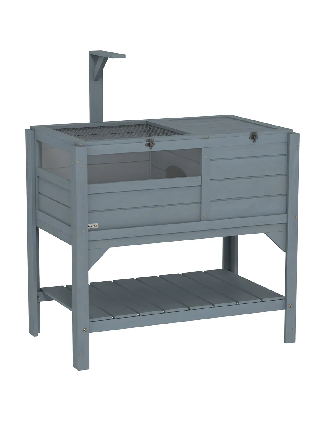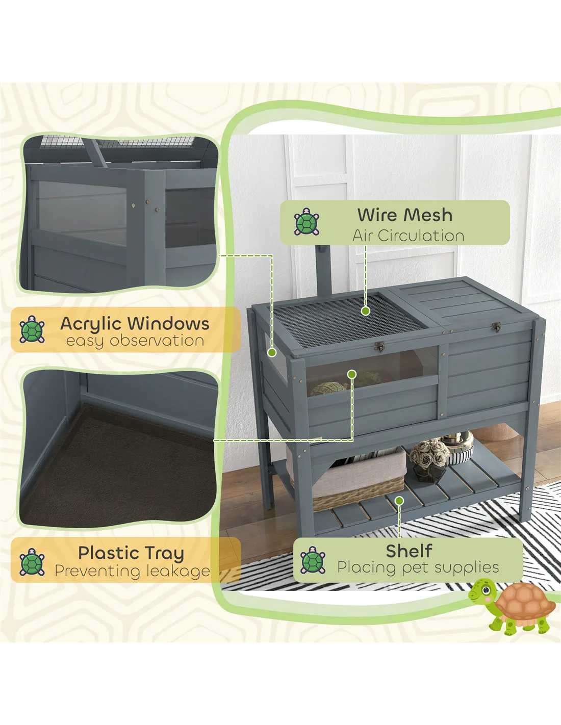 PawHut Wooden Tortoise House, with Shelter, Run, Shelf, Lamp Holder, Tray, Grey
