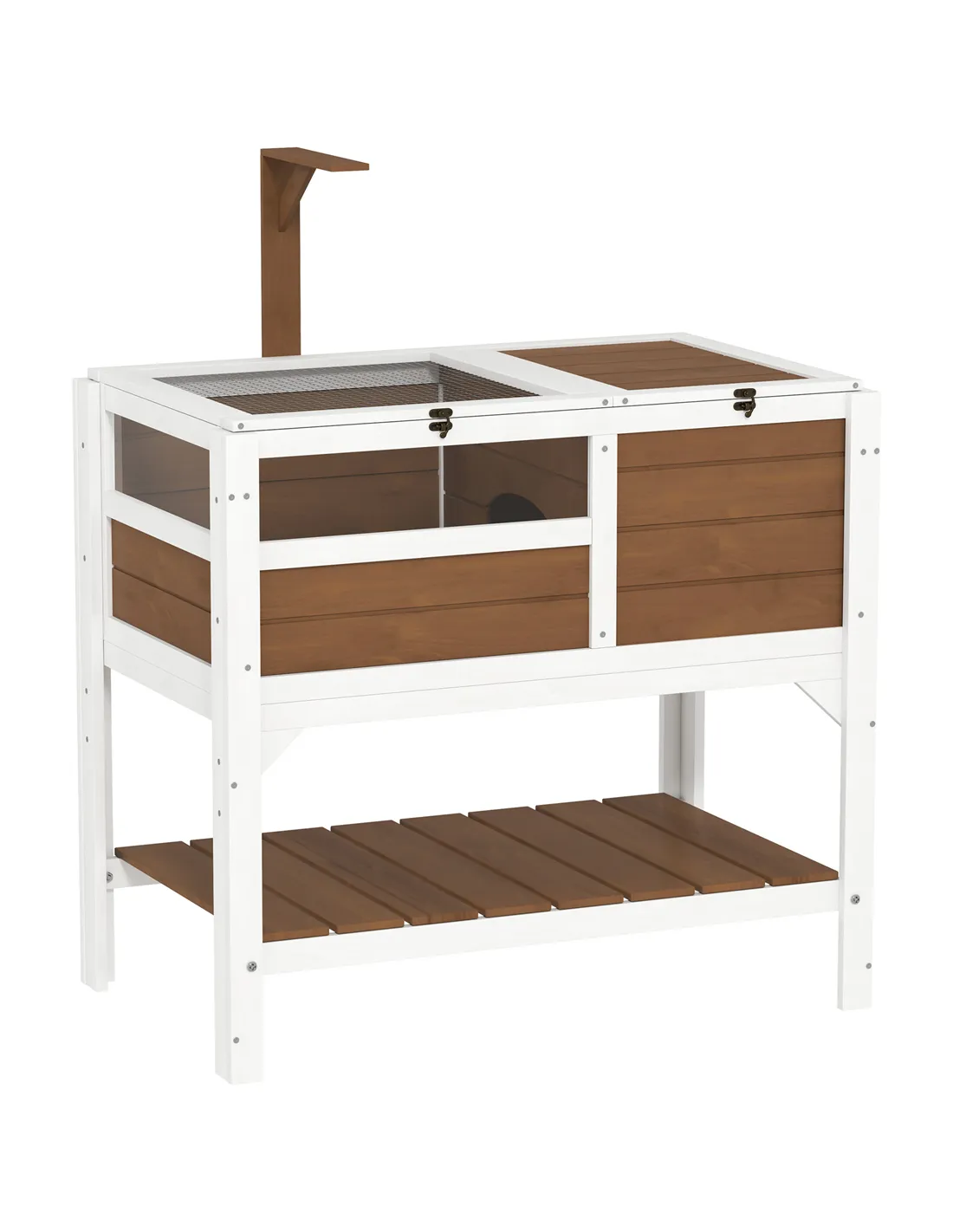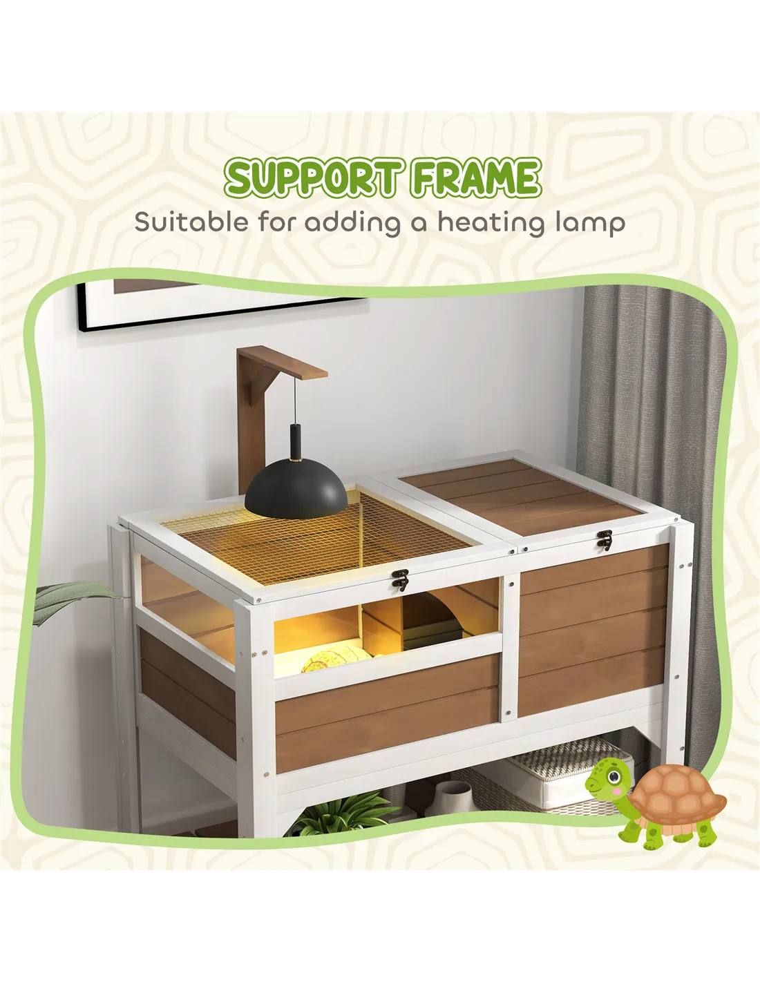 PawHut Wooden Tortoise House, with Shelter, Run, Shelf, Lamp Holder, Tray - Brown
