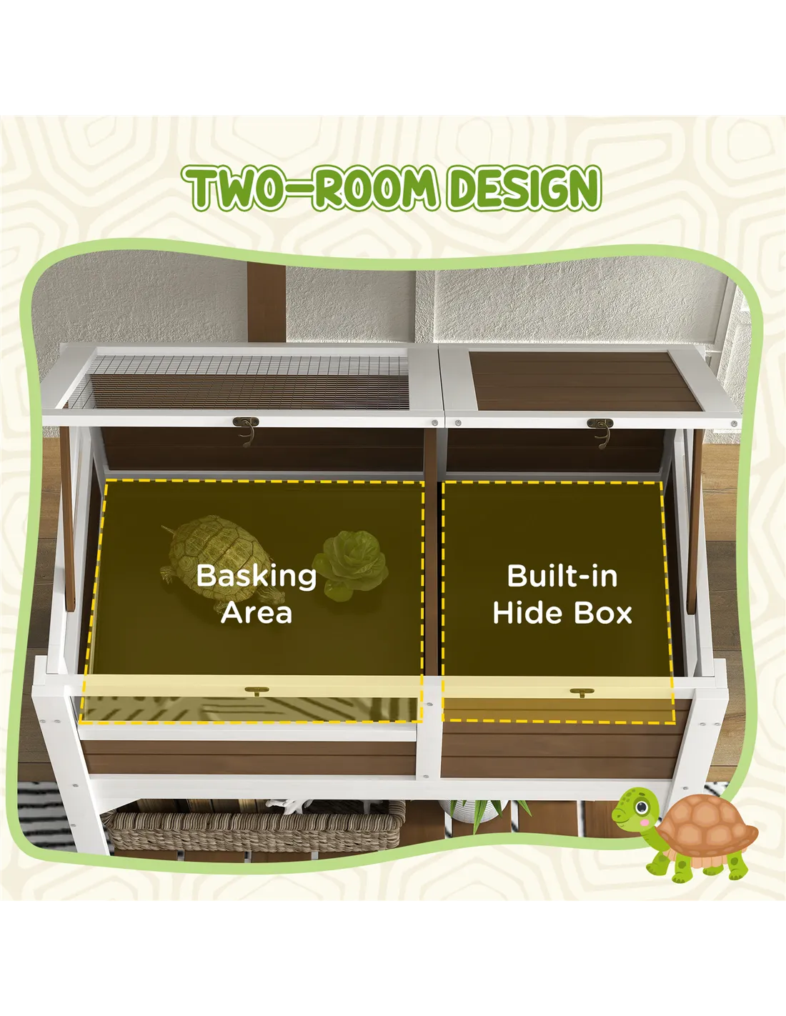 - Built-in hide box and basking area
