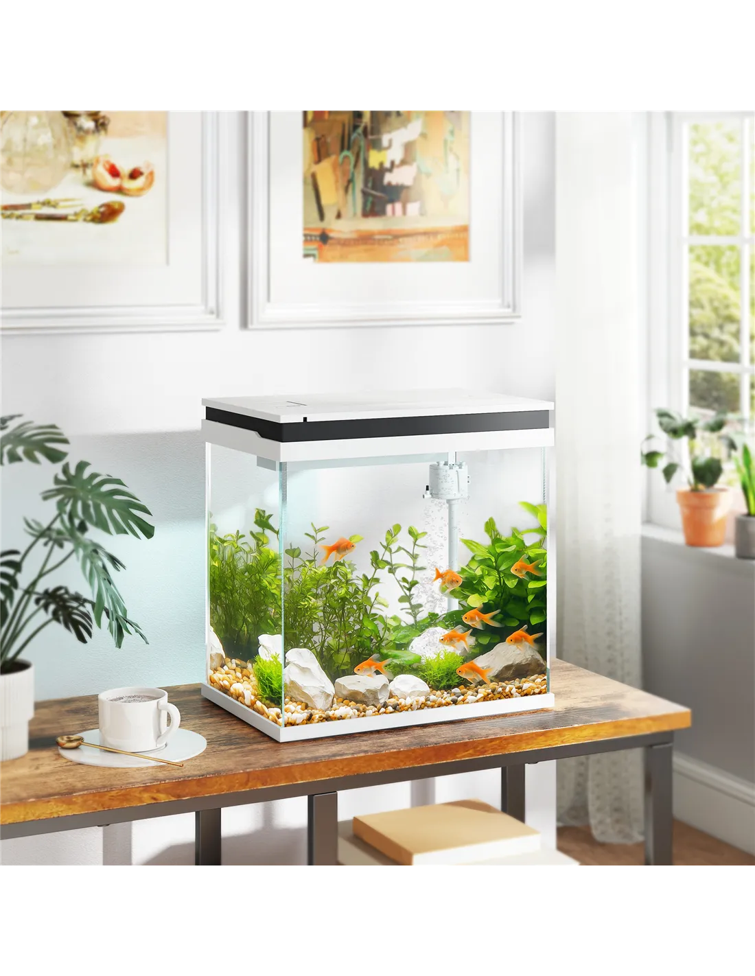 PawHut 26L Glass Fish Tank With Filter System, LED Lights, Water Pump, White