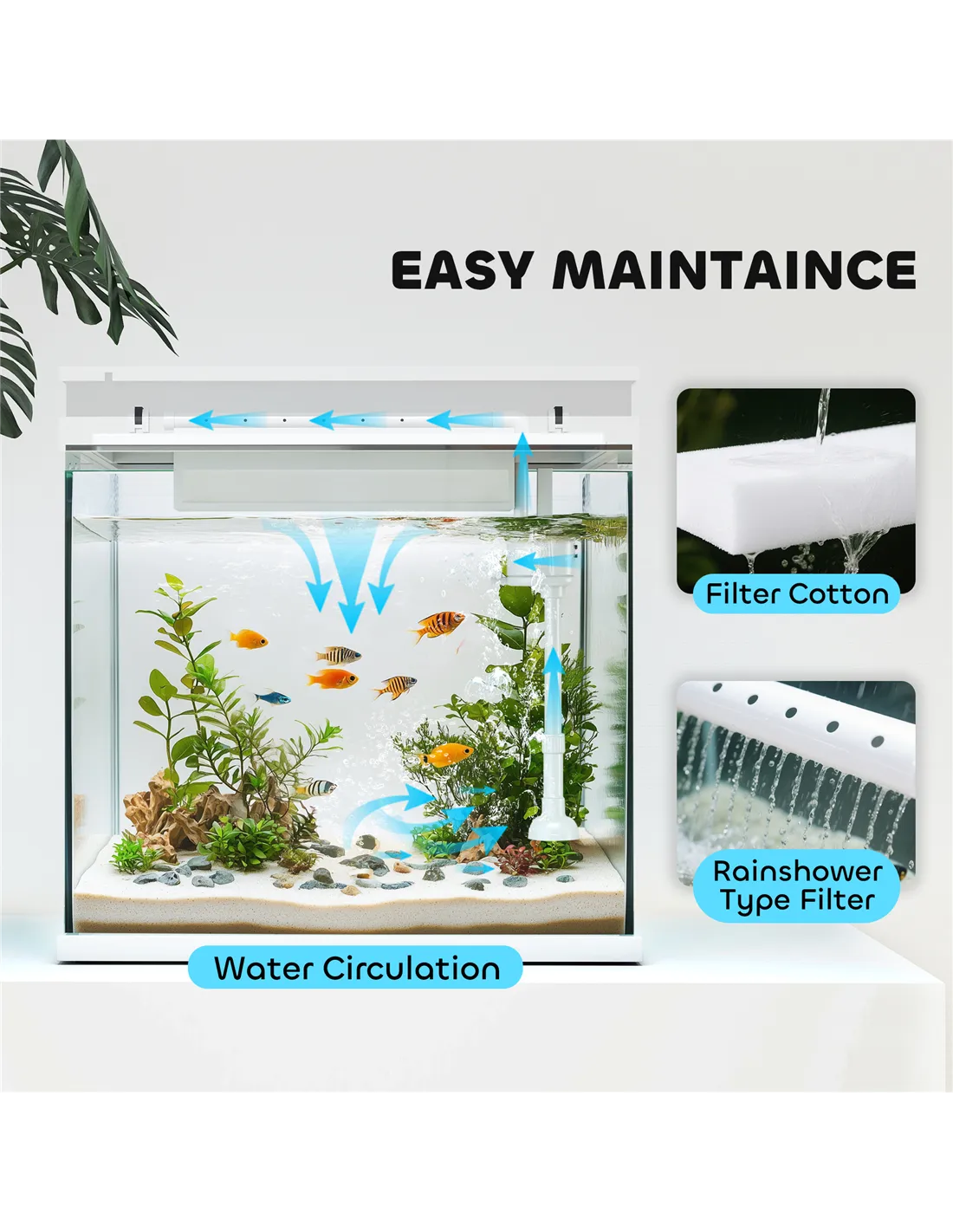 Dive into the aquatics lifestyle with the PawHut fish tank! Holding 26 litres, it offers plenty of space for betta fish, goldfish, shrimps or cold water fish. The filter system requires only weekly filter changes, ensuring easy maintenance. Colourful LED lights enhance your aquatic setup, making it dazzle in any room. Transform any space into a fun and exciting aquarium, bringing it to life.