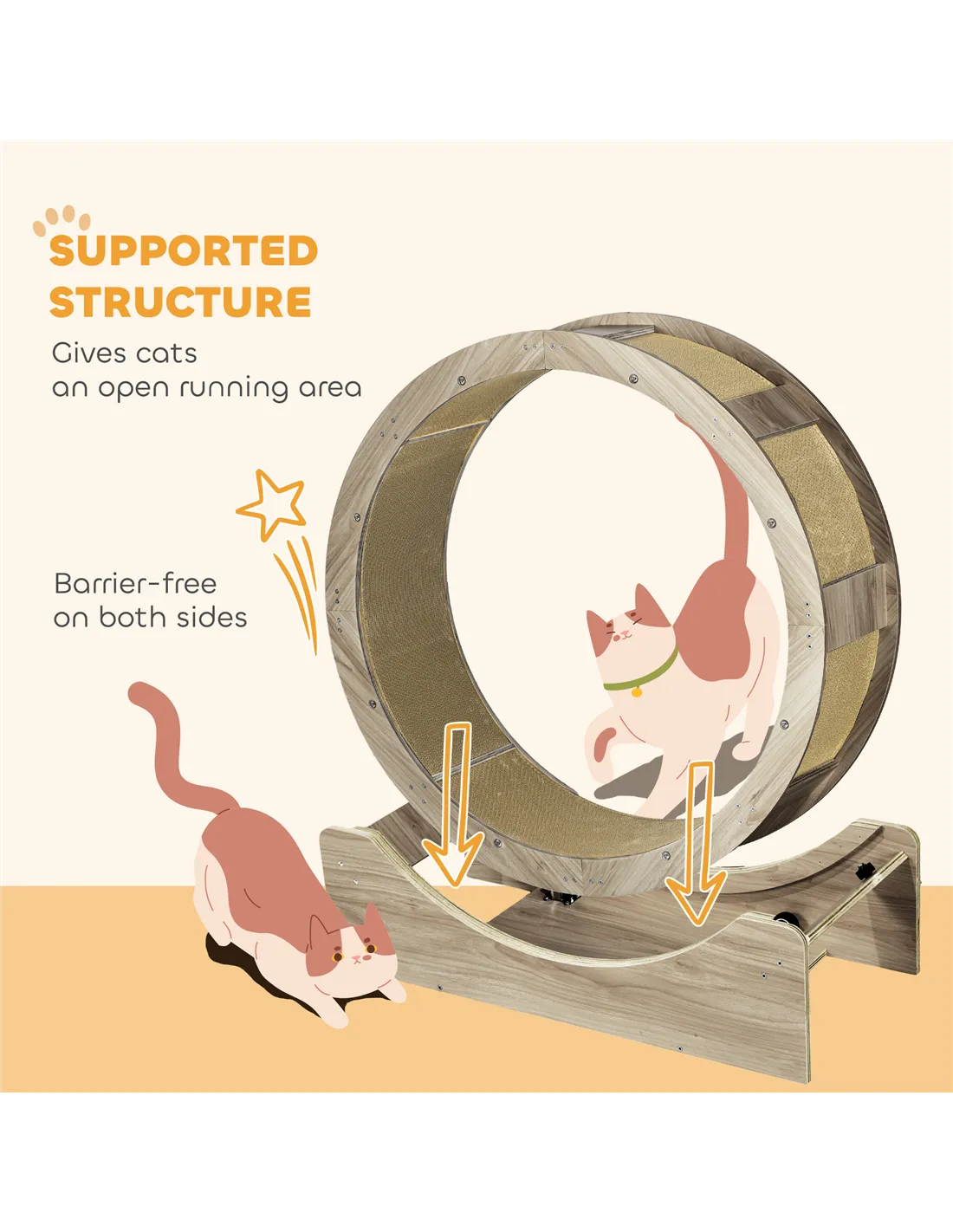 A must-have for cat owners, this PawHut cat tree keeps pets active and entertained. Featuring a spinning wheel that supports your pet's natural movements, it also includes a built-in brake to ensure safe, controlled play. Inside, a scratching pad allows cats to strengthen their claws and stay healthy, which is easily replaceable when needed. This fun addition transforms their world for the better, making it a wonderful blend of entertainment and exercise.