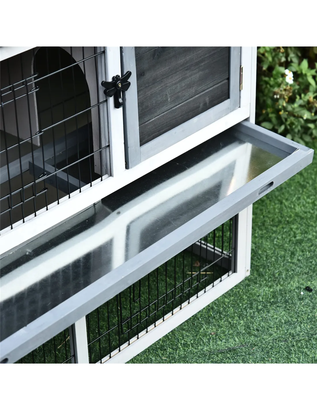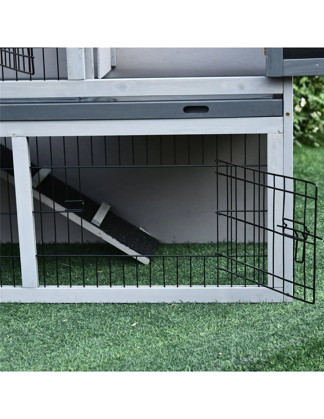 PawHut Small Animal Two-Level Fir Wood Guinea Pigs Hutches Bunny Cage w/ Slide Out Tray Grey