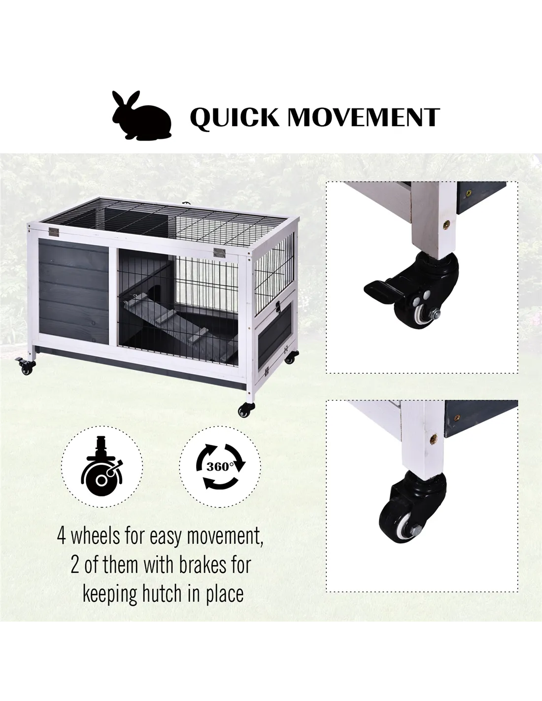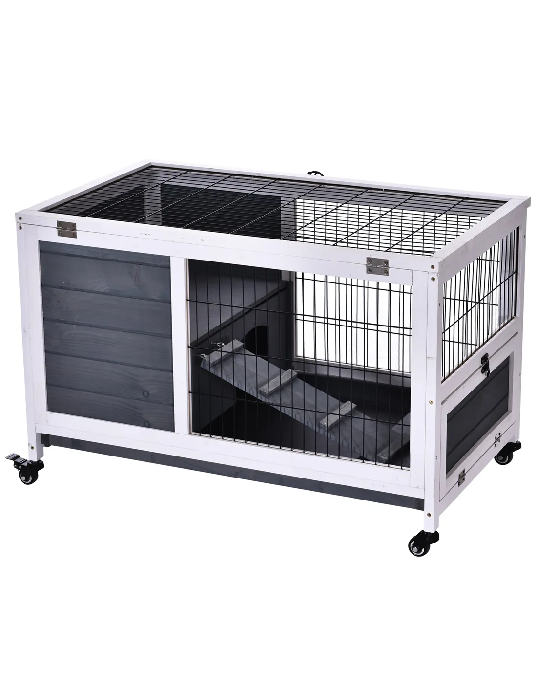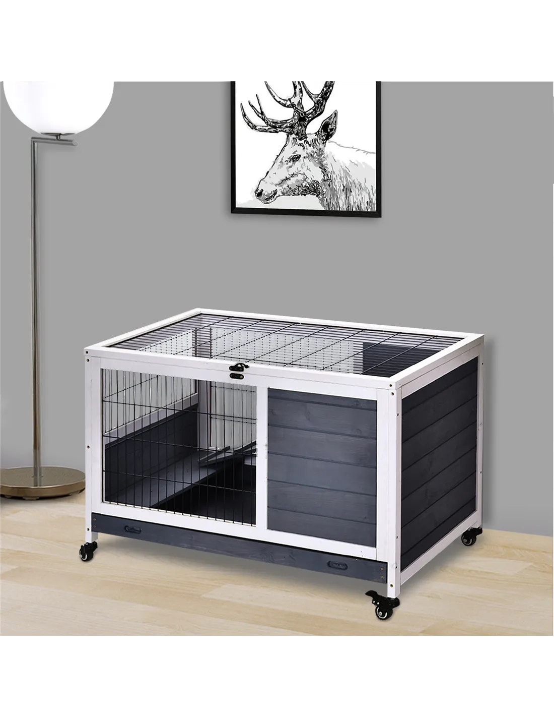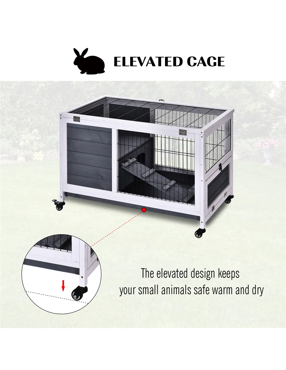PawHut Rabbits Indoor Fir Wood Lift-Top Hutch Guinea Pigs Hutches-Grey and White