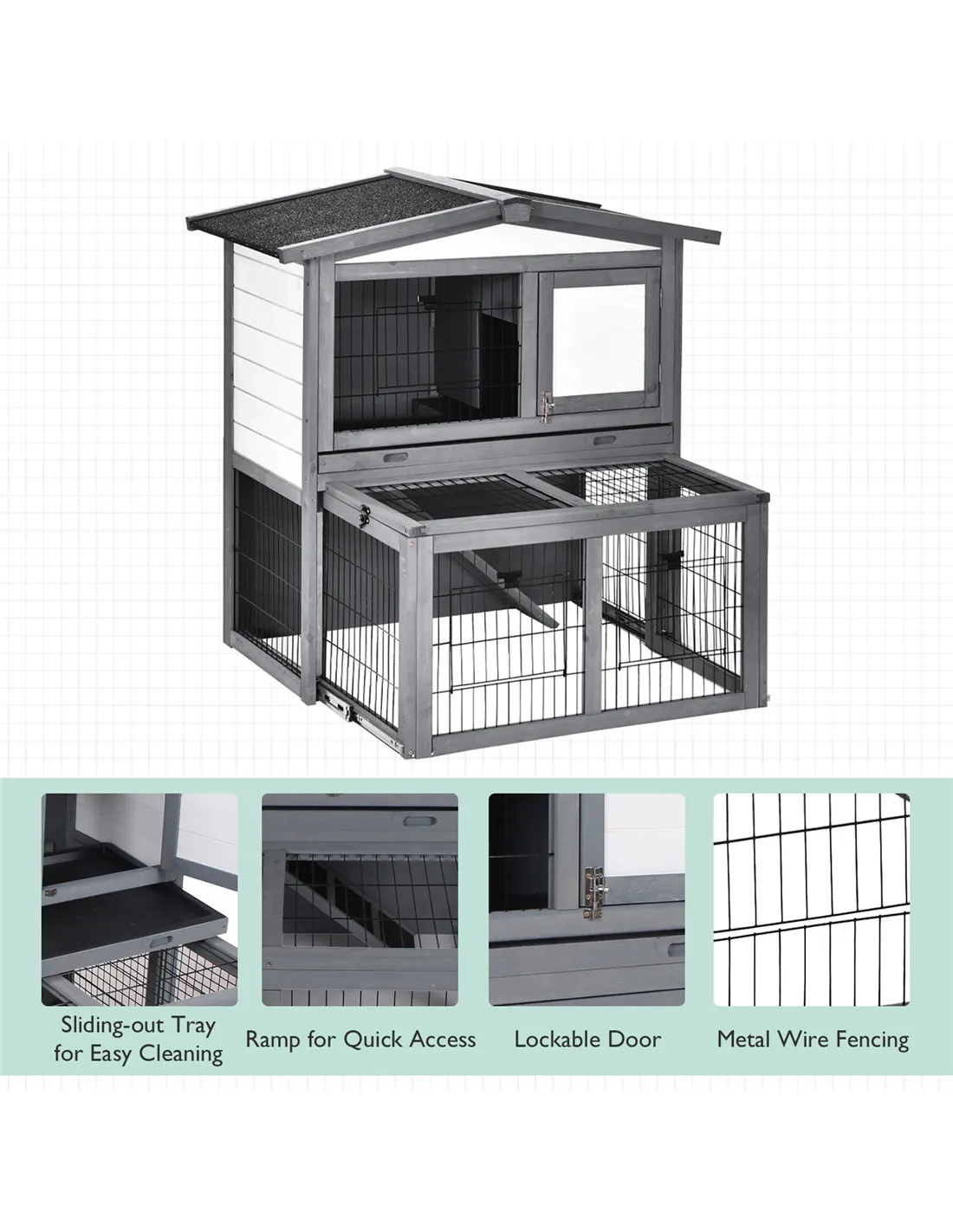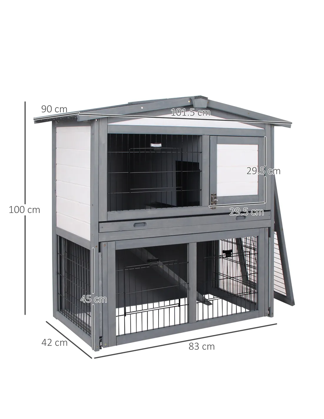 PawHut Rabbits 2-Tier Fur Wood Outdoor Hutch Guinea Pigs Hutches Grey