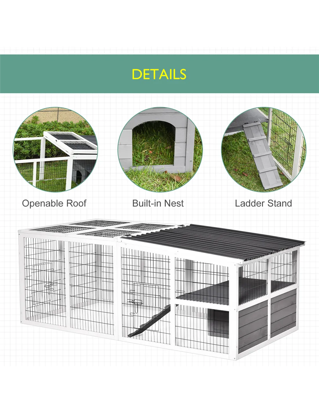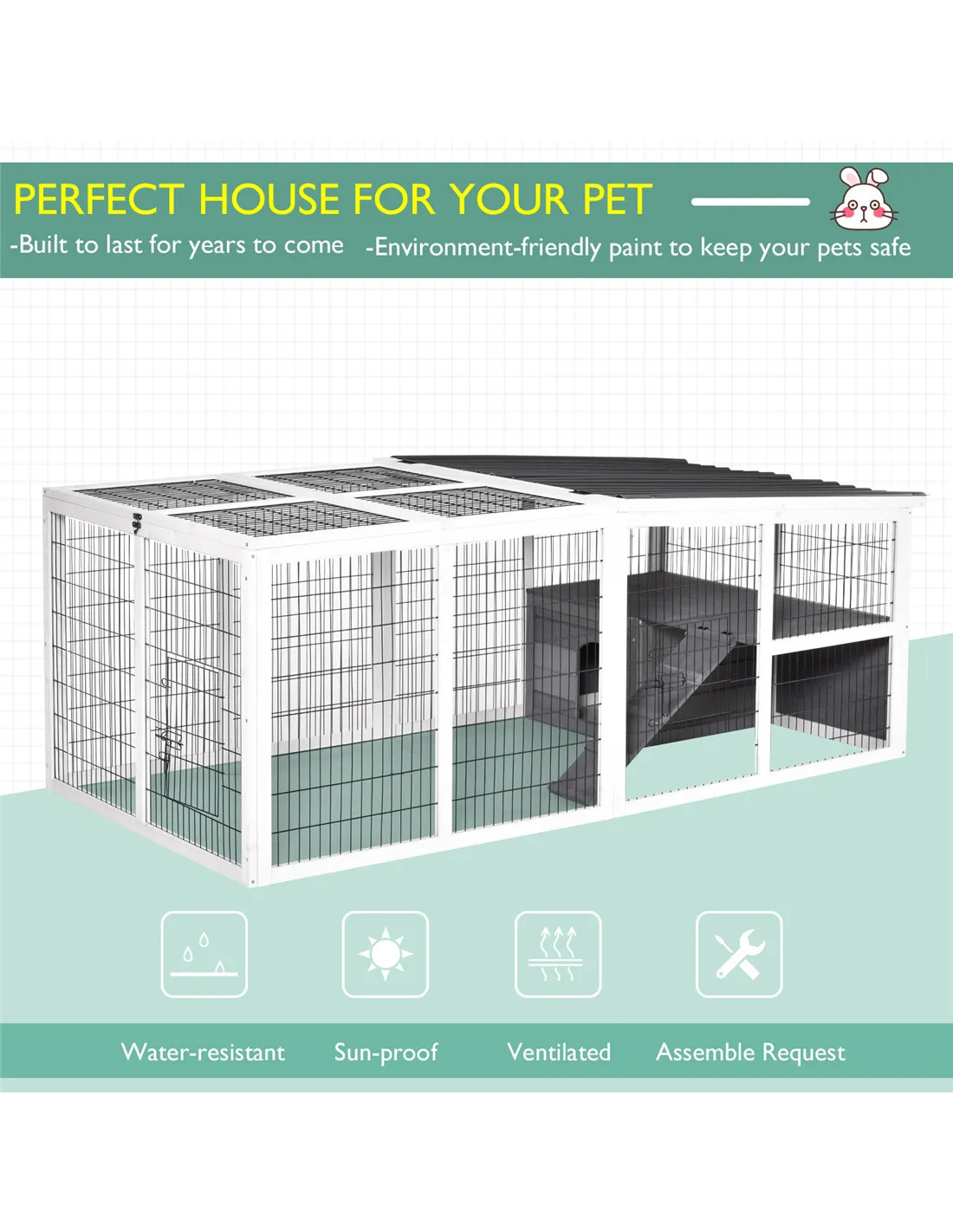 PawHut Guinea Pigs Hutches Wooden Small Rabbits Hutches Pet Run Cover Indoor Outdoor, Grey