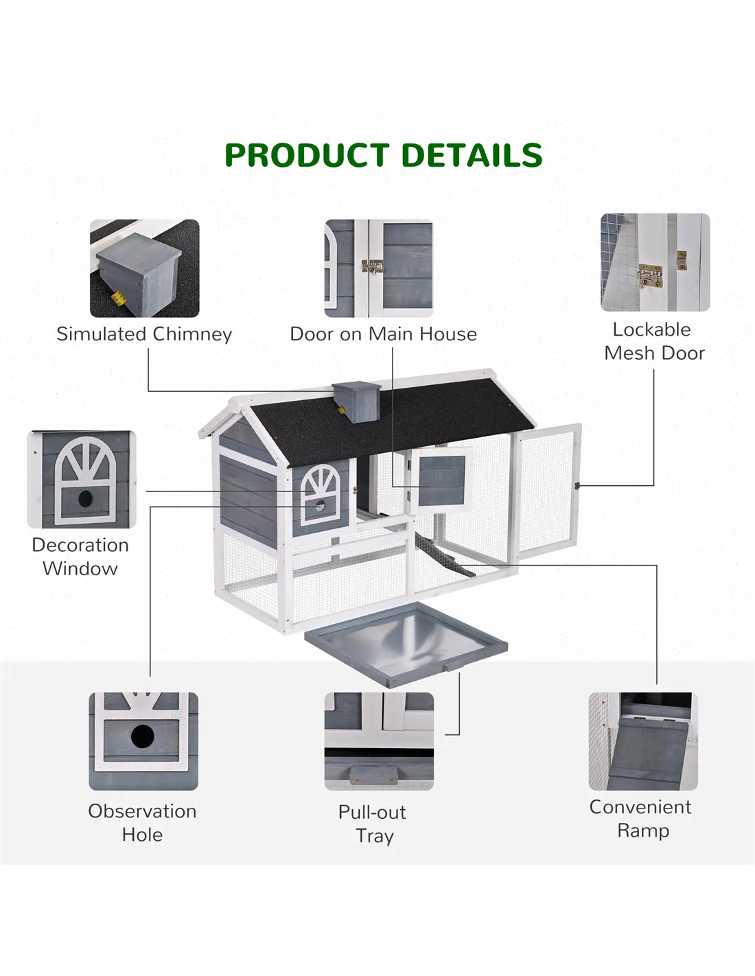 - Door Size: 23.5L x 25H cm (Main House), 40L x 53H cm (run area)