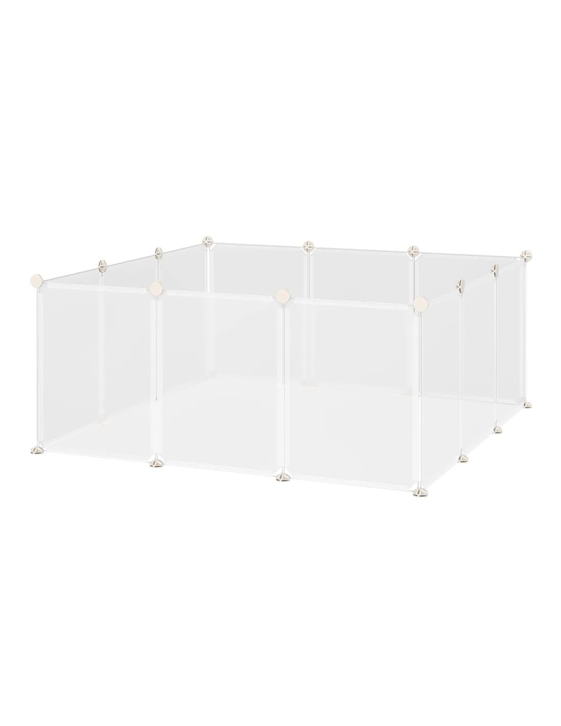 The PawHut pet playpen offers versatile solutions for pet owners seeking a secure and adaptable enclosure. Ideal for creating a safe indoor or outdoor area, it can be arranged to fit various spaces, whether in a living room corner or a garden patio. Its modular design allows you to expand or reduce the size effortlessly, making it perfect for kittens, rabbits, guinea pigs, chinchillas, and other small pets. Use it as a temporary play area during cleaning or as a permanent safe zone to prevent pets from wandering. The sturdy panels and non-slip mats ensure stability on different floor types, while the white finish blends seamlessly with most home interiors.
