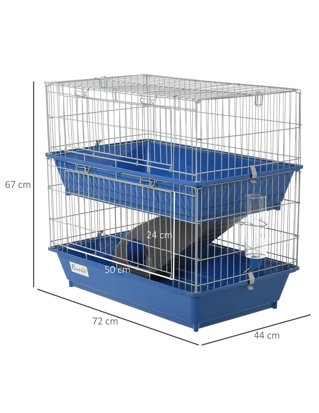 PawHut Metal 2-Tier Small Guinea Pigs Hutches Blue