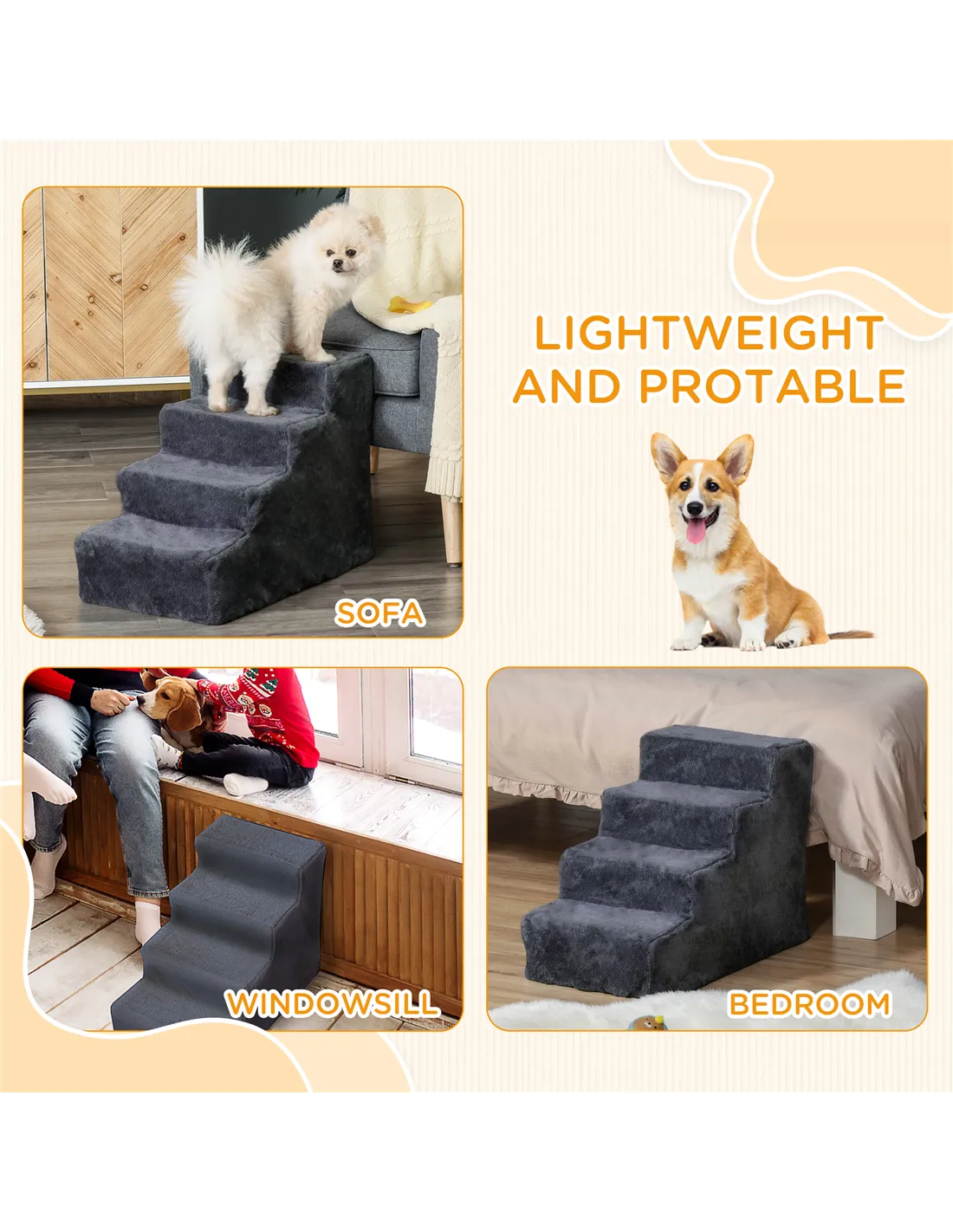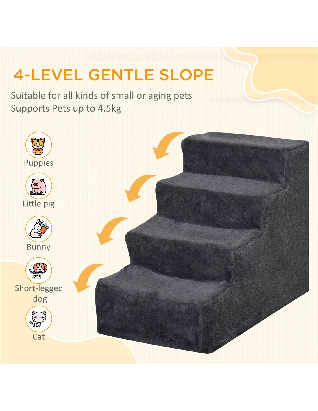 PawHut Four-Step Dog Stairs, with Washable Plush Cover, for High Bed Sofa, Dog Stairs for Small Dog and Cat - Dark Grey