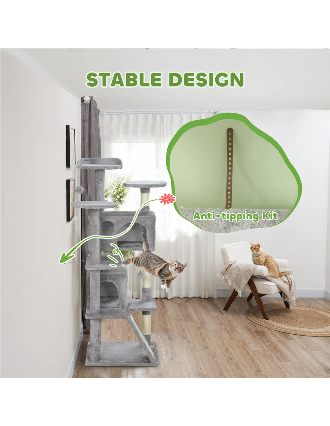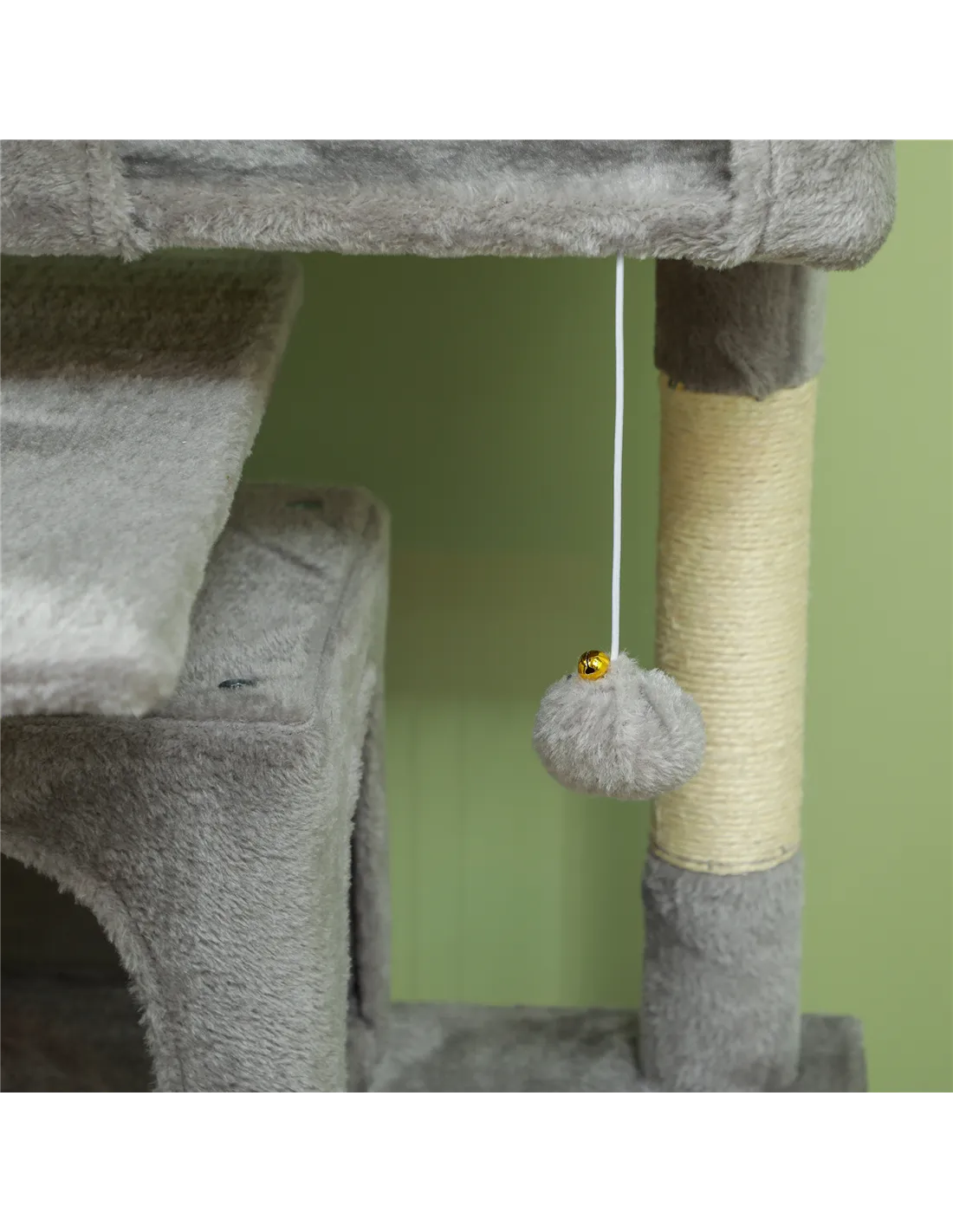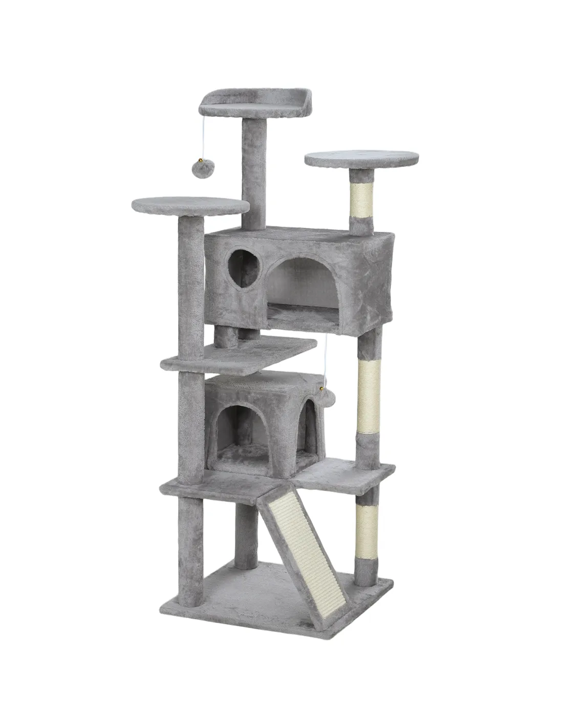 PawHut 138cm Cat Tree, Multi-Level Cat Tower with Scratching Posts and Pad, Bed, Condos, Platforms, Toy Balls, Light Grey