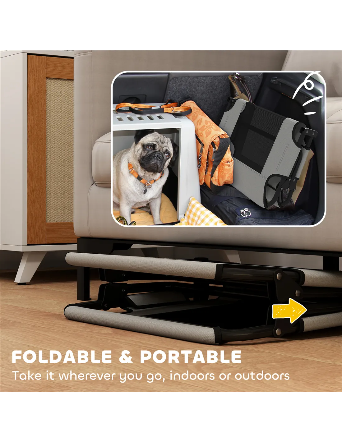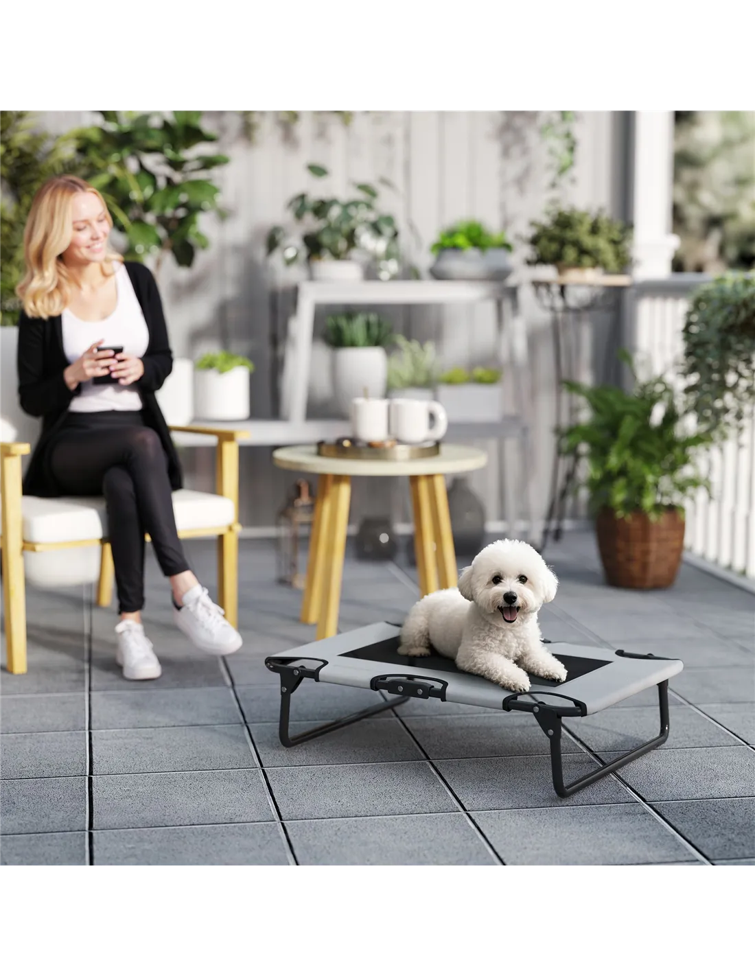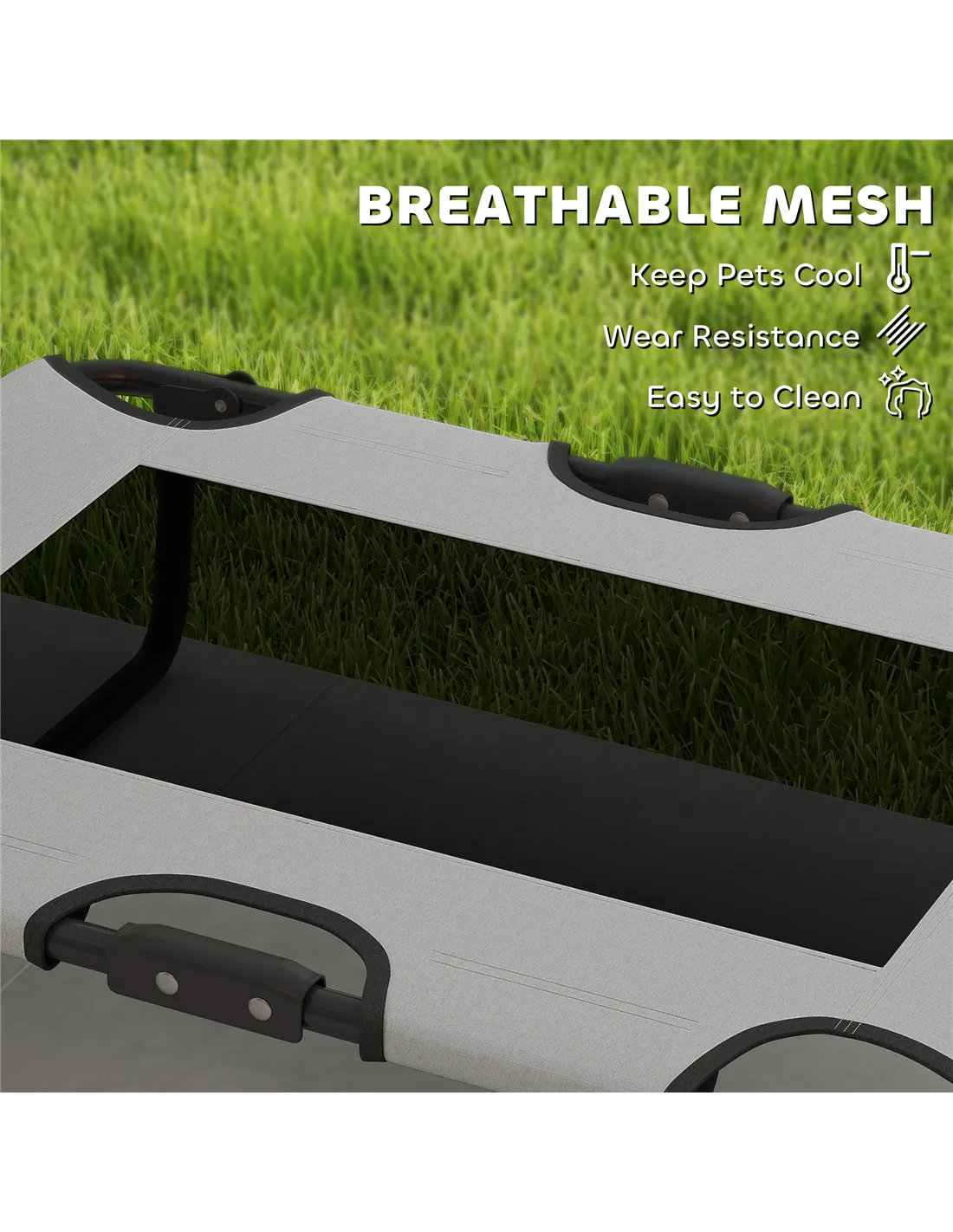 PawHut Portable Raised Dog Bed, Elevated Pet Cot with Breathable Mesh for Indoor Outdoor, for Small Medium Dogs, Light Grey