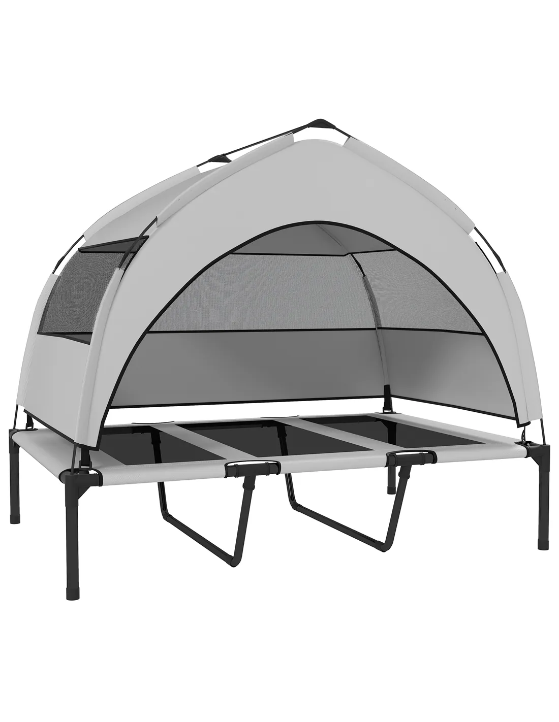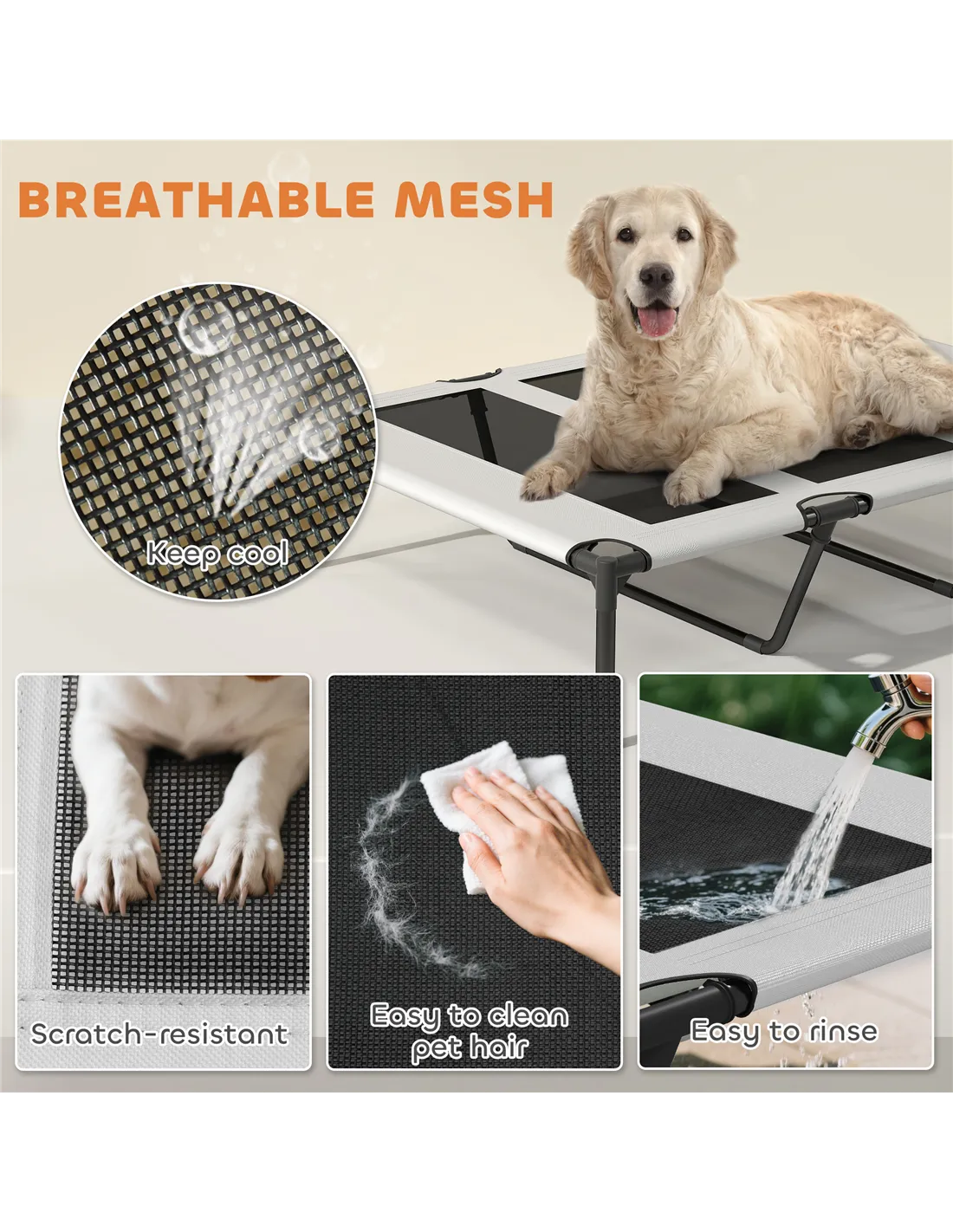 - Ideal for garden relaxation, this elevated dog bed offers your large dog a cool, shaded spot during sunny days, thanks to its removable canopy and breathable mesh fabric.