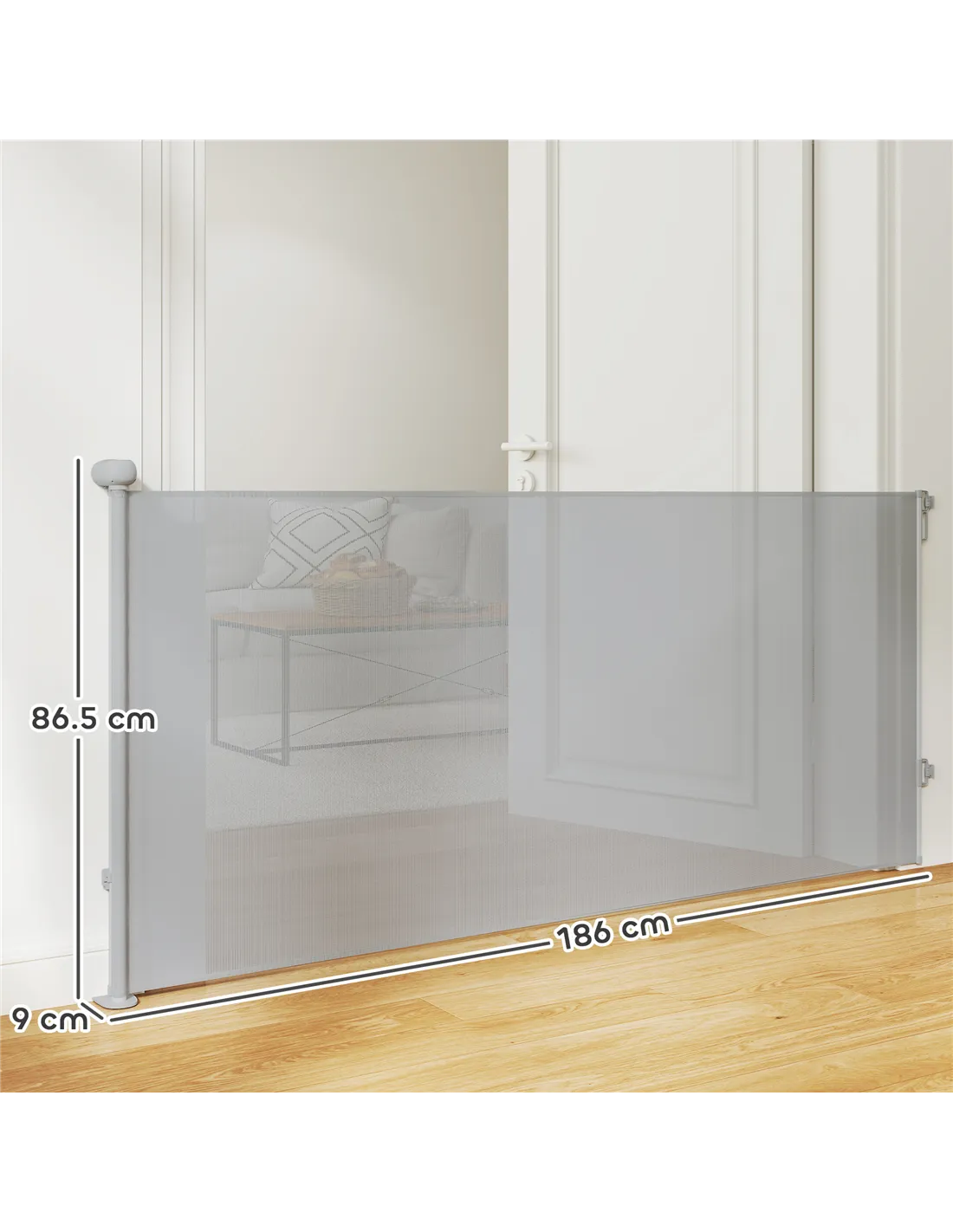 - Retractable dog gate adjusts to fit doorways up to 180 cm
