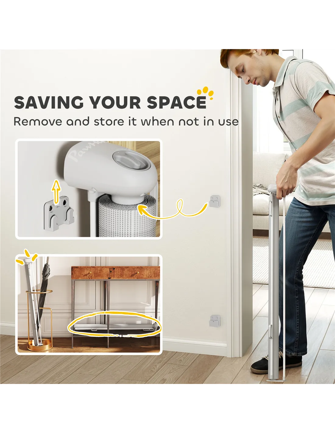 - Suitable for use in homes with narrow or wide openings, thanks to its adjustable width of up to 180 cm, fitting a variety of interior layouts.