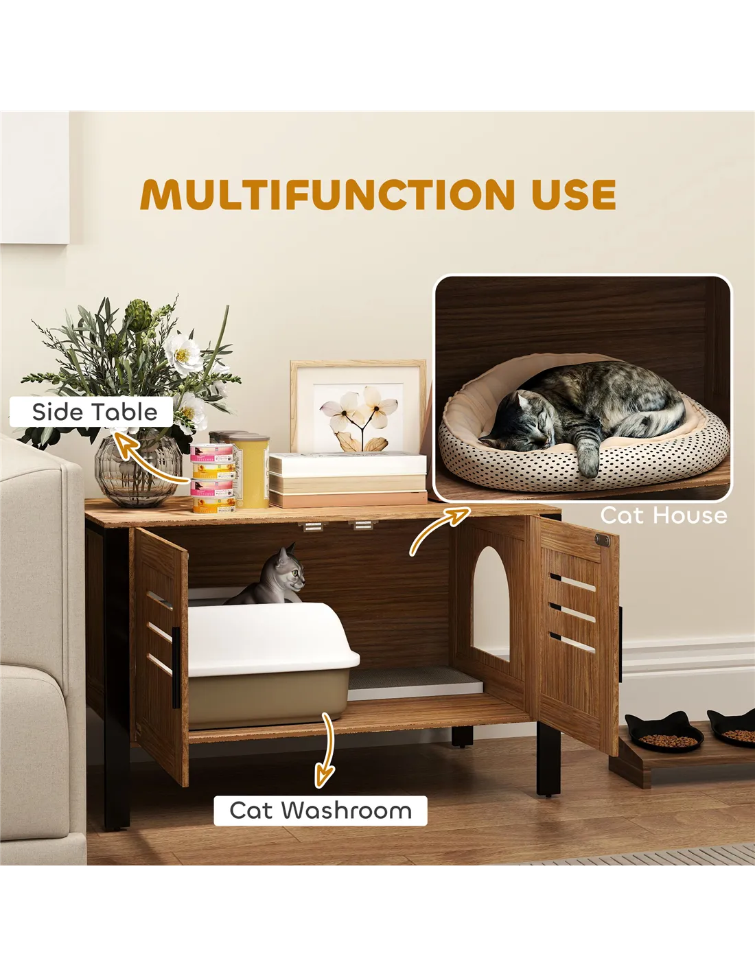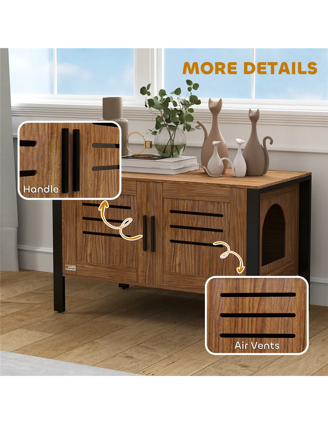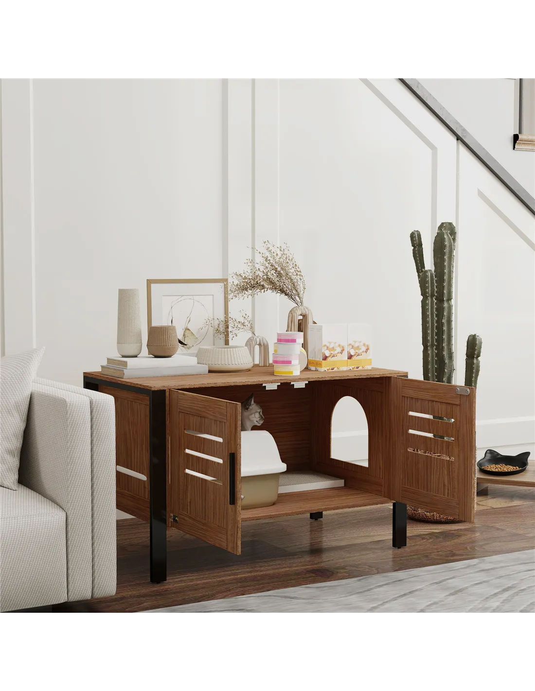 - Place the enclosure in your living room or hallway to blend seamlessly with contemporary furniture, serving as both a discreet litter box and a stylish side table.