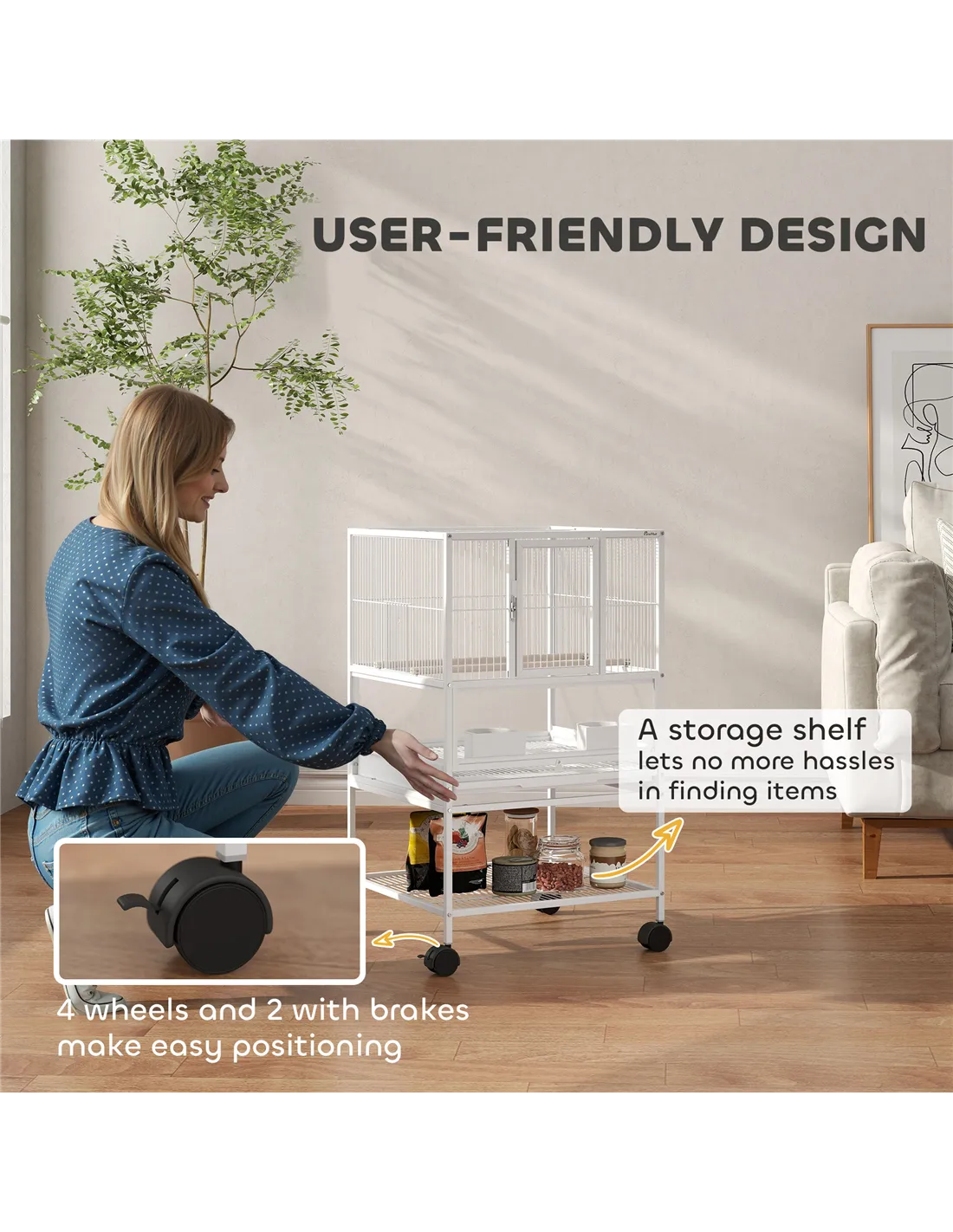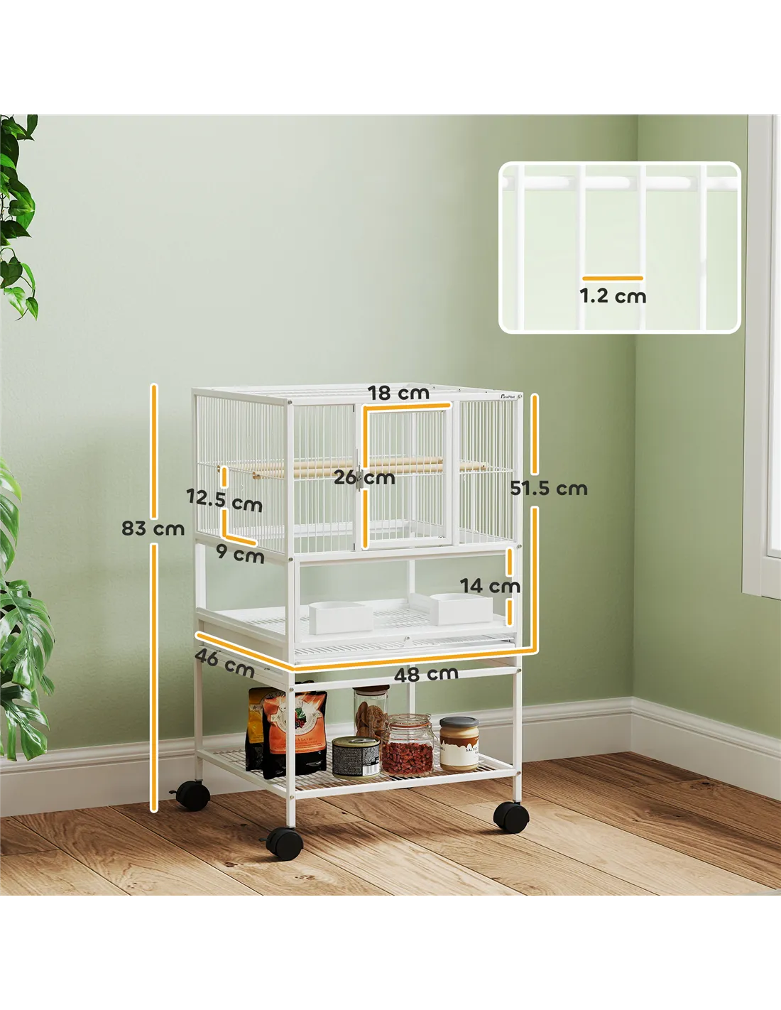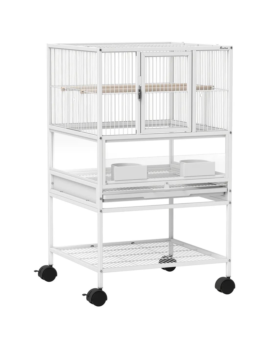 PawHut Bird Cage with Rolling Stand, Acrylic Viewing Panels, Storage Shelf, for Budgie, Parakeet, 48 x 46 x 83 cm