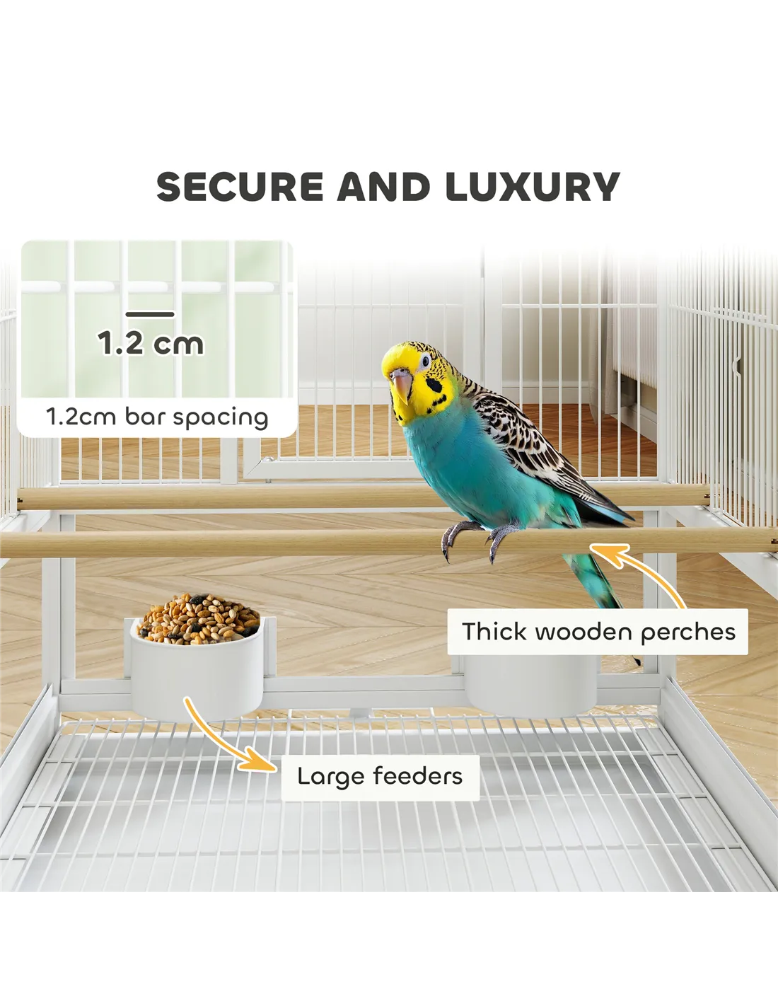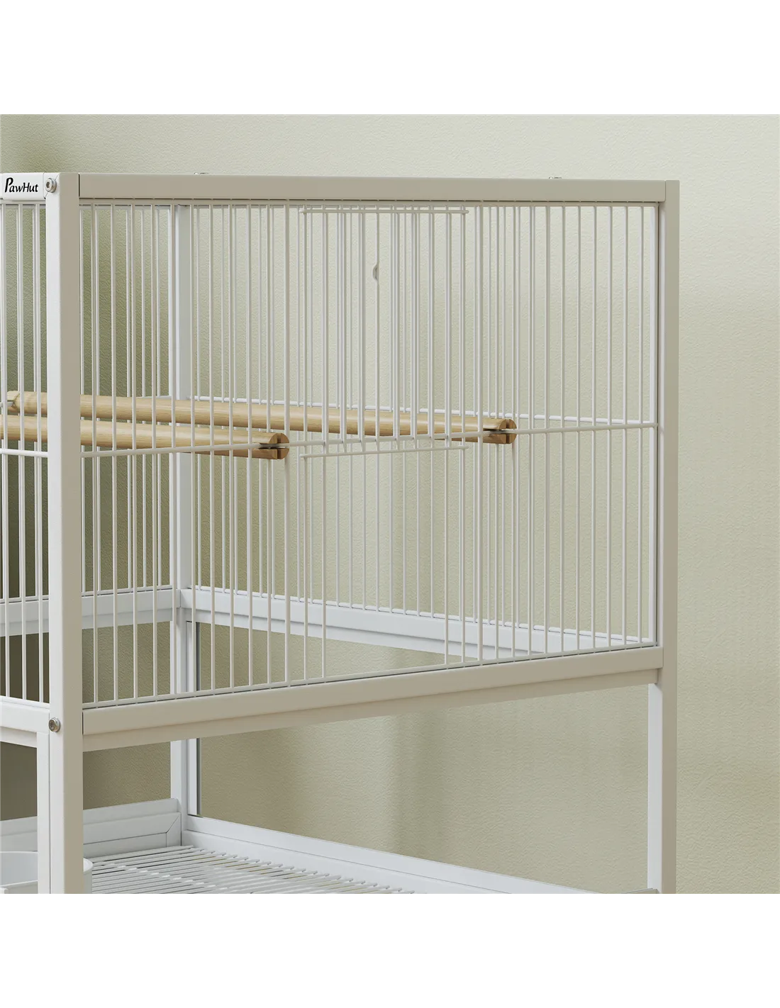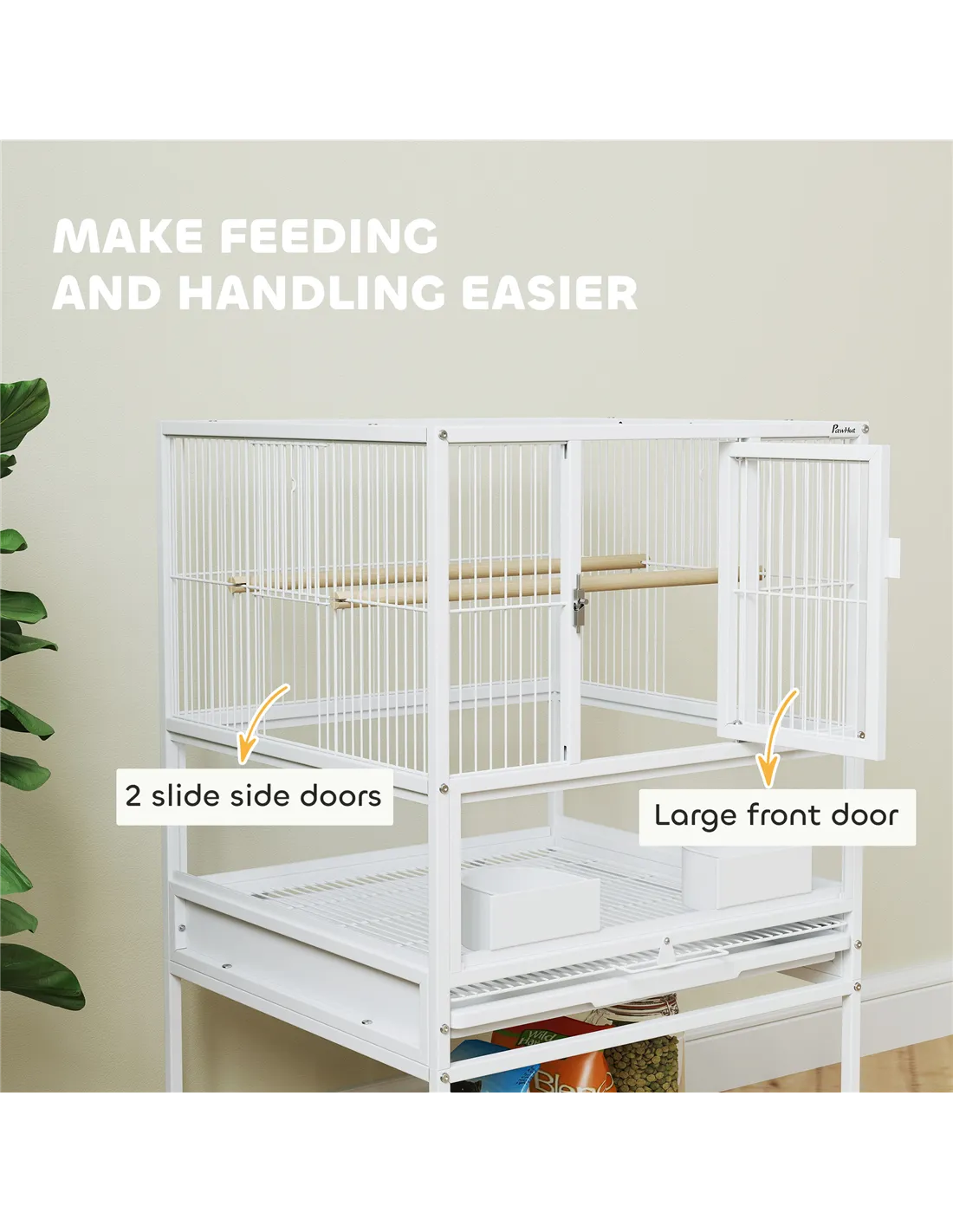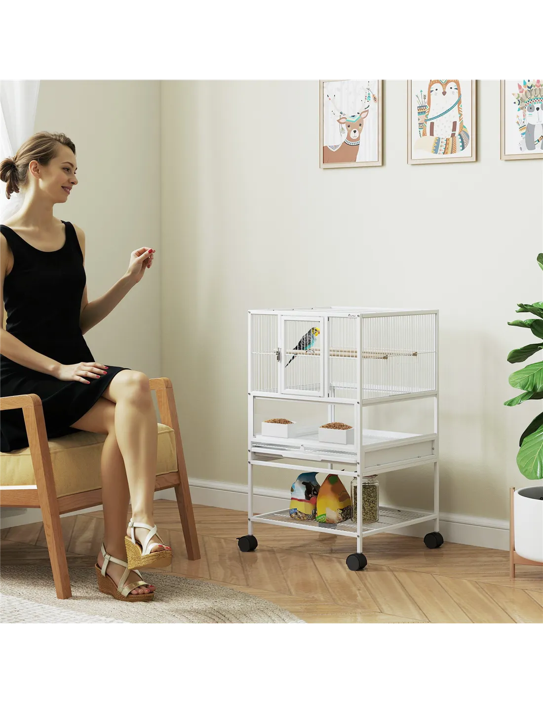 PawHut Bird Cage with Rolling Stand, Acrylic Viewing Panels, Storage Shelf, for Budgie, Parakeet, 48 x 46 x 83 cm