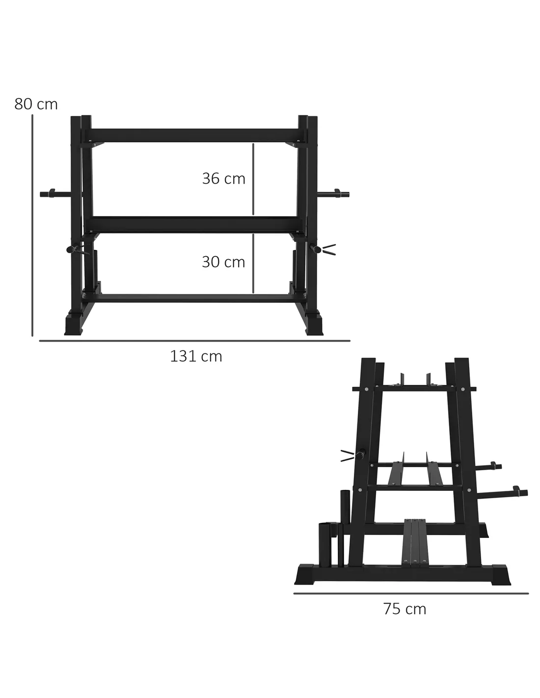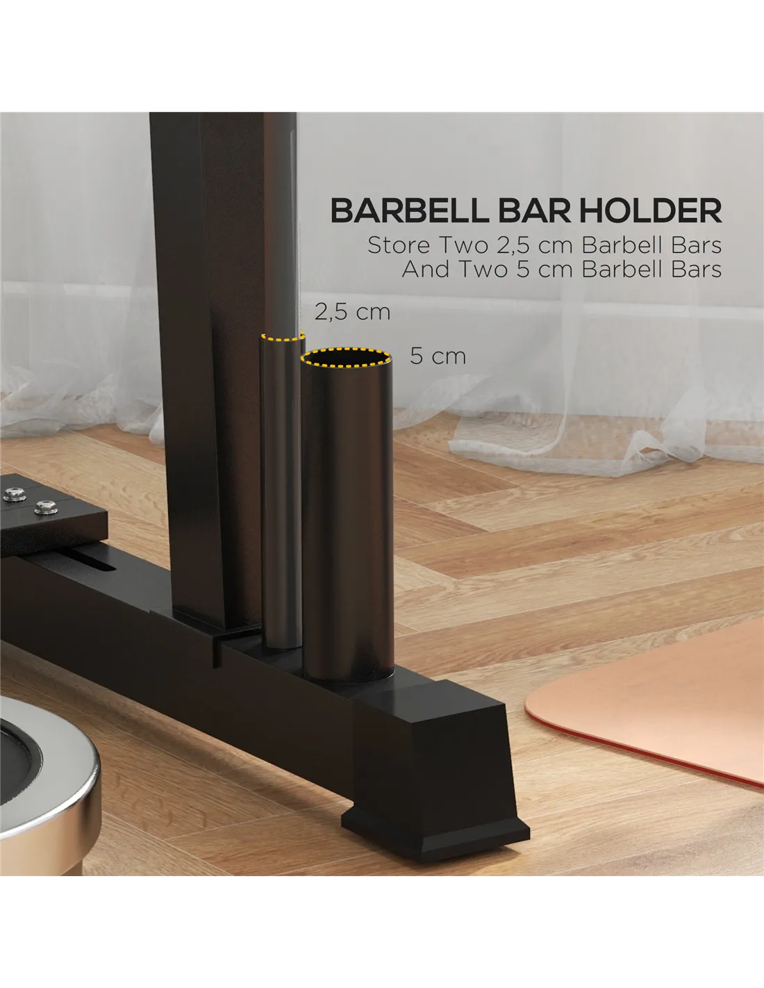 - Can hold two 2.5cm barbells and two 5cm barbells