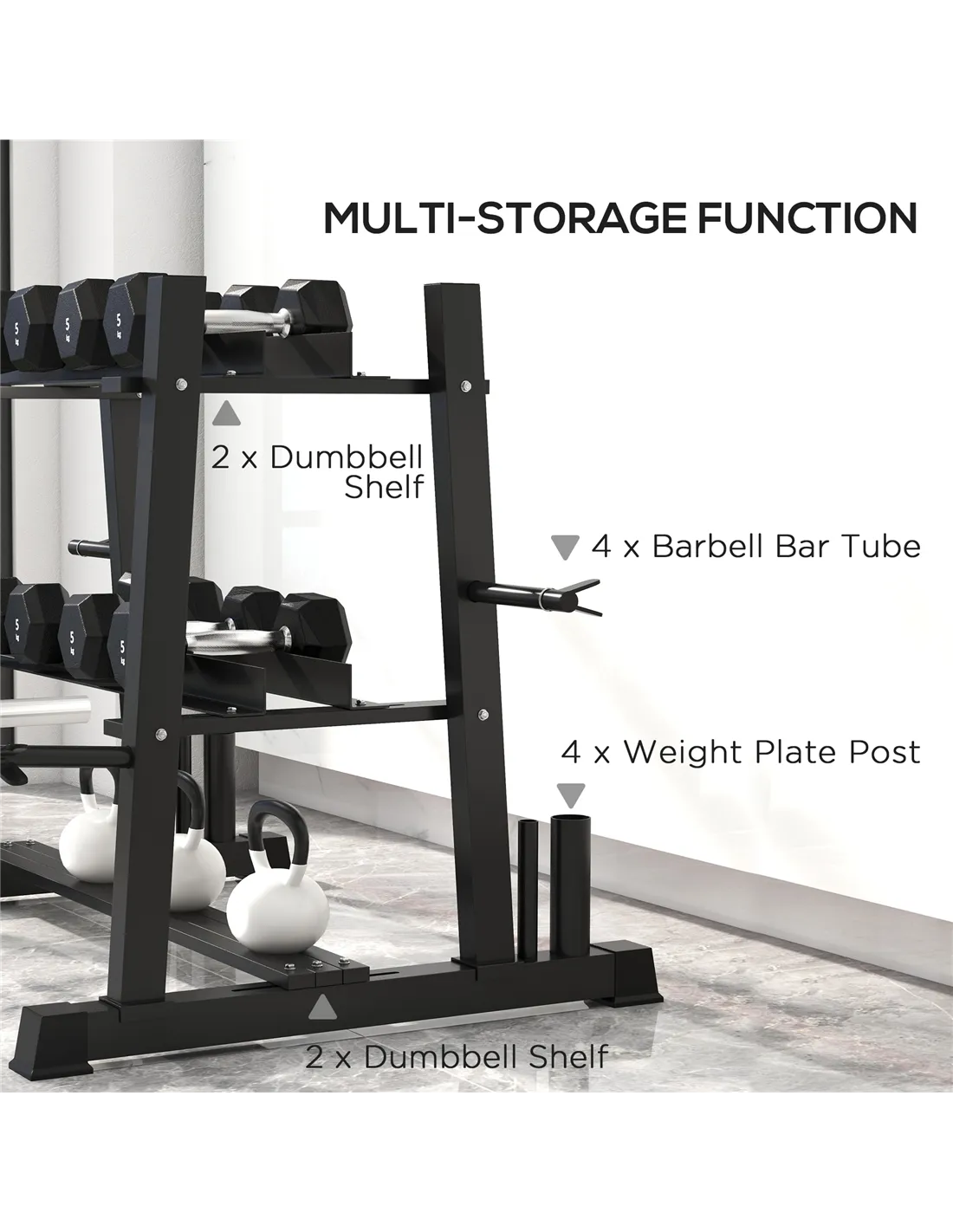 SPORTNOW 3-Tier Dumbbell Rack, Versatile Weight Rack with 4 Weight Rods for Dumbbells, Kettlebells and Plates (Rack Only)