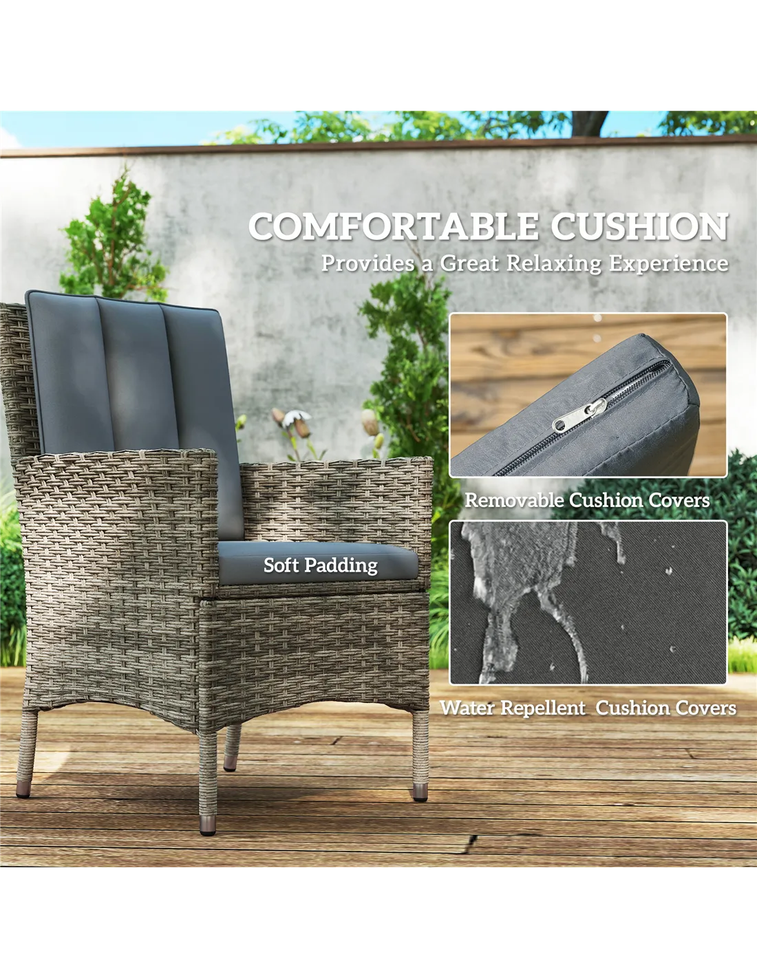 Based on customer reviews, the Outsunny dining set is praised for its sturdy construction and stylish appearance. Buyers appreciate the powder-coated aluminium frames that resist weathering, ensuring long-lasting durability. The soft cushions receive positive remarks for comfort during extended use. Many users highlight the ease of cleaning the PE rattan and tempered glass surfaces, which maintain their fresh look with minimal effort. The parasol hole is noted as a convenient feature for adding shade without compromising table space. Overall, customers value the balance of quality and design, making this set a popular choice for UK gardens and patios.