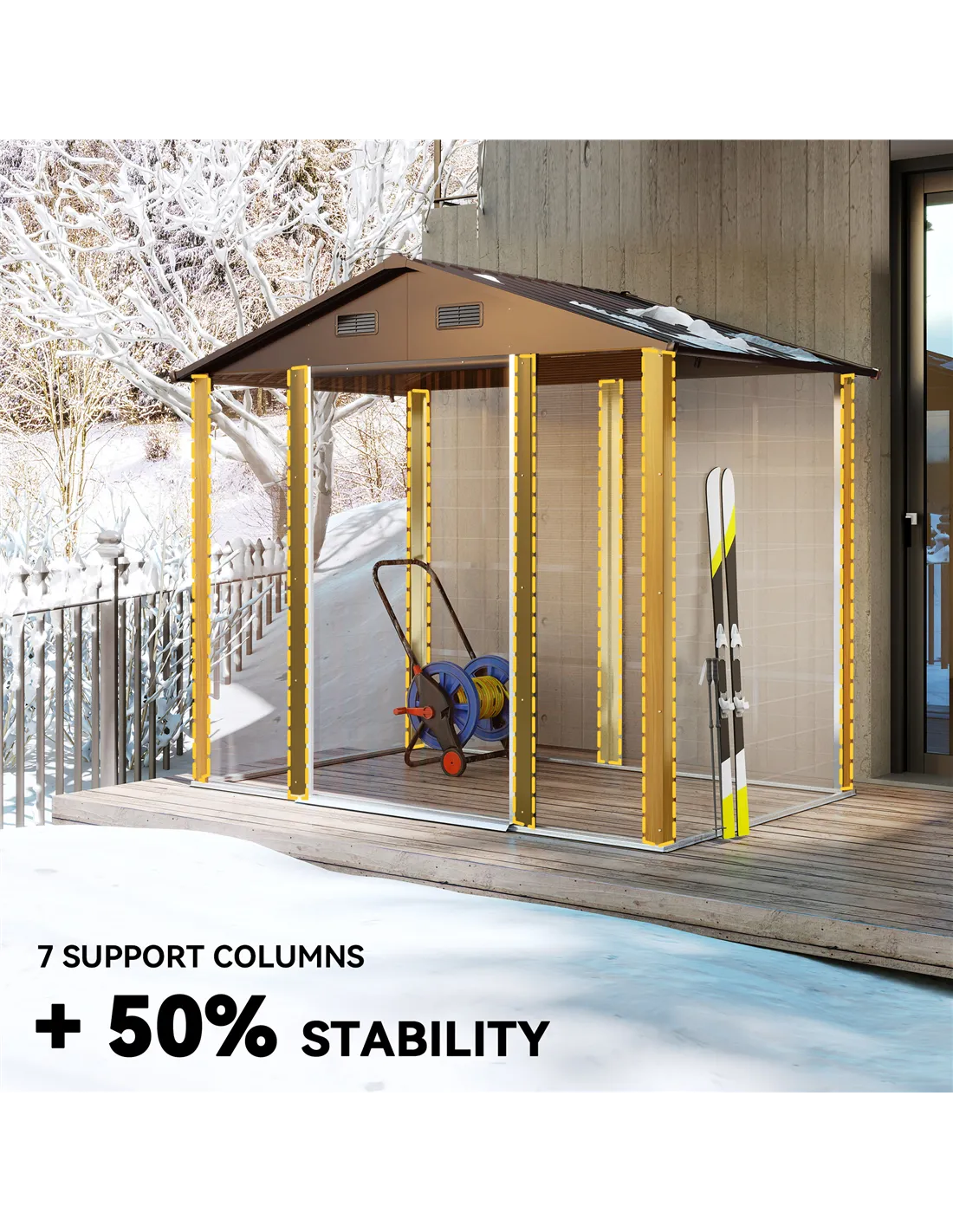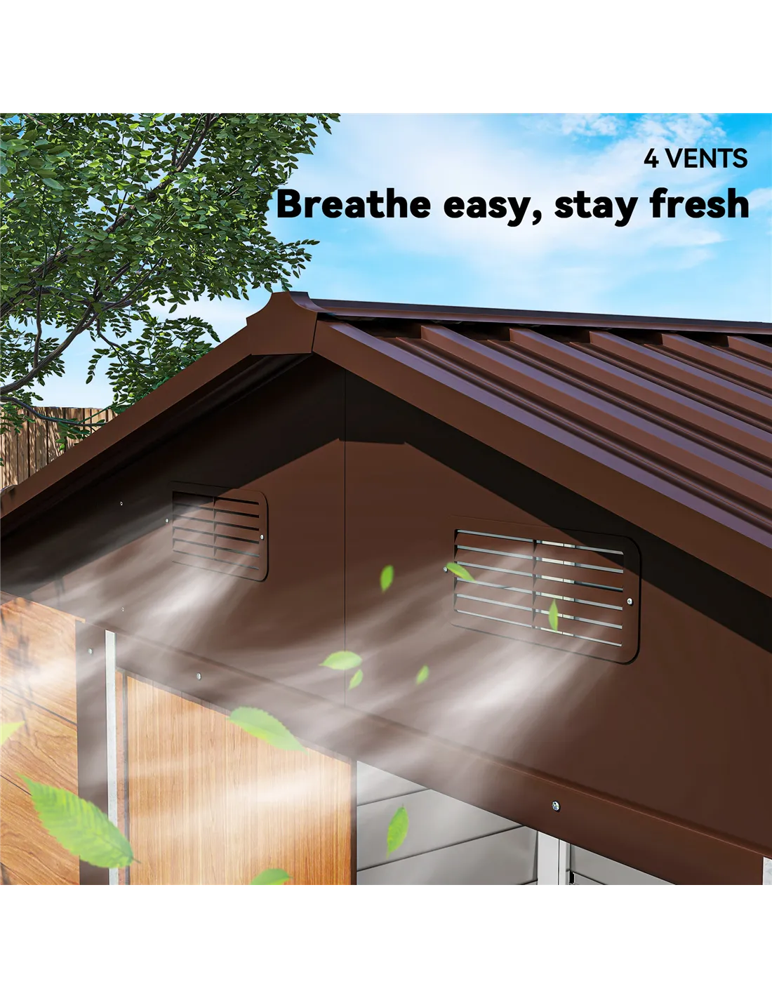 Outsunny 6 x 8ft Galvanised Steel Shed - Brown Wood-Effect