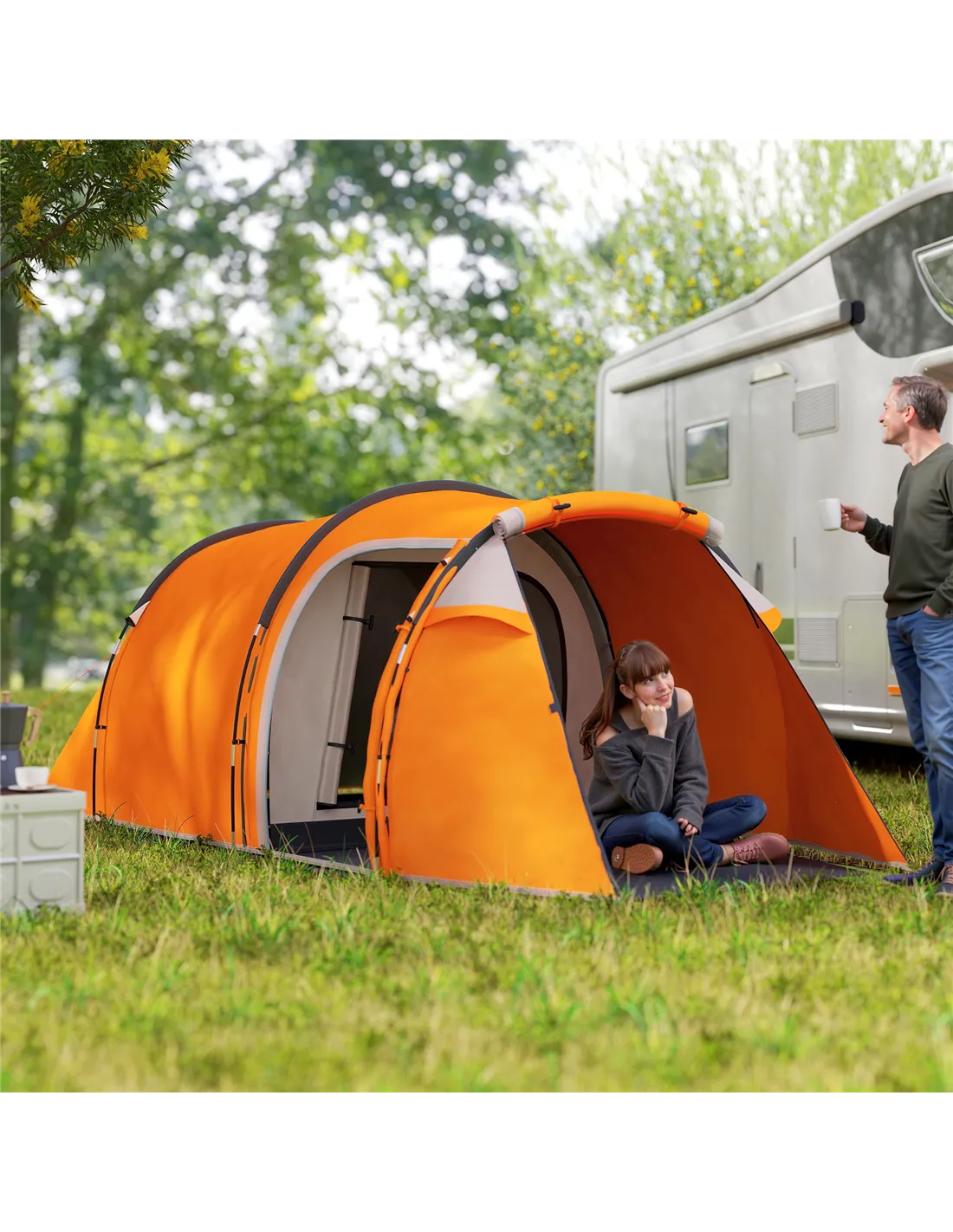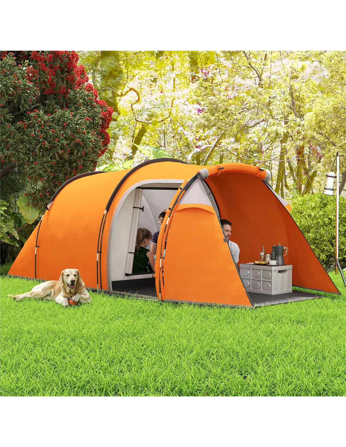Outsunny 2-3 Man Tunnel Tents w/ Vestibule Camping Tent Porch Air Vents Weather-Resistant Shelter, Orange