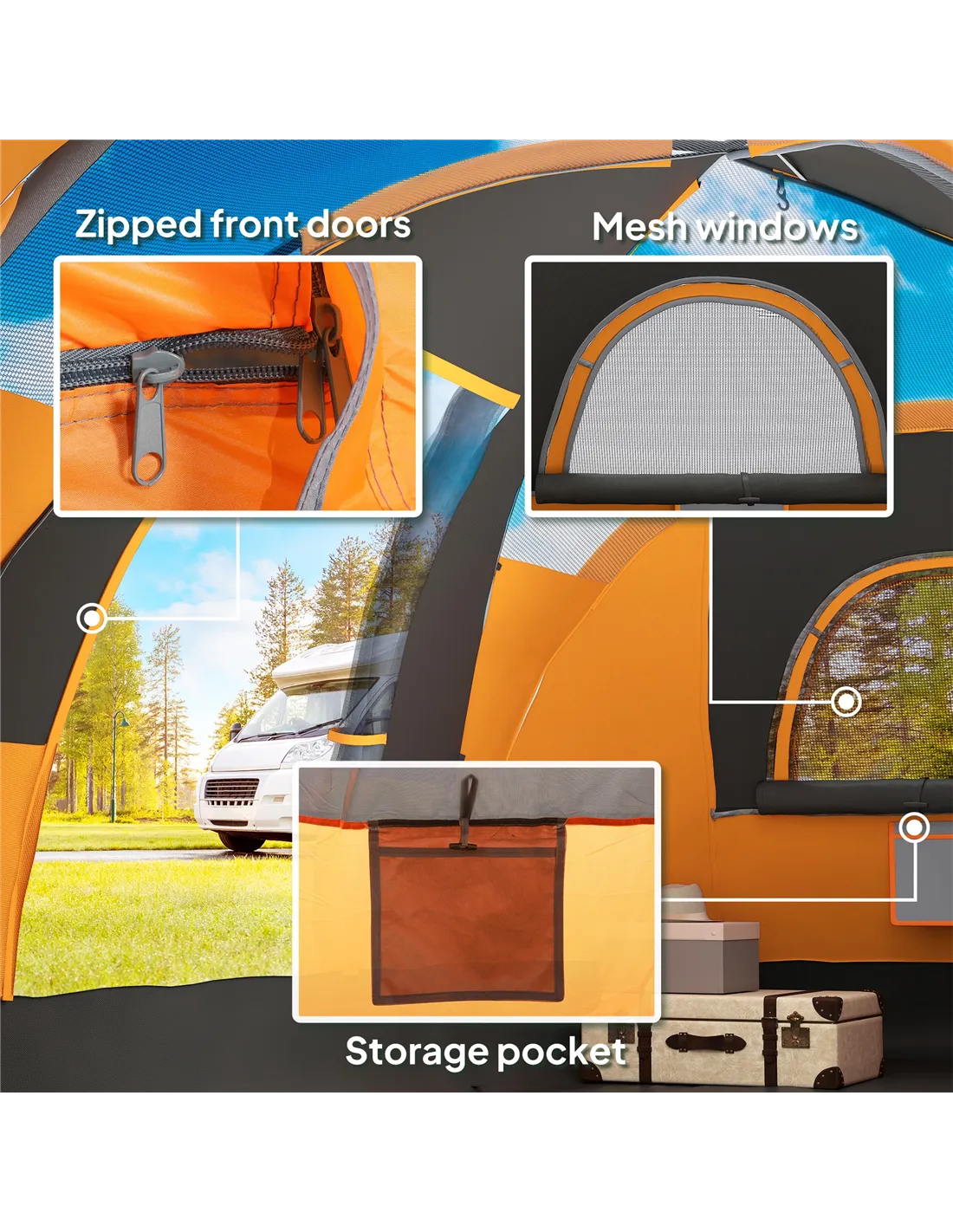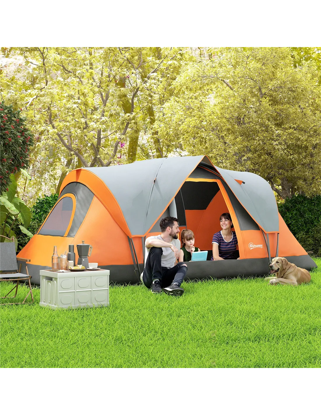 Outsunny 5-6 Man Dome Camping Tent - Orange