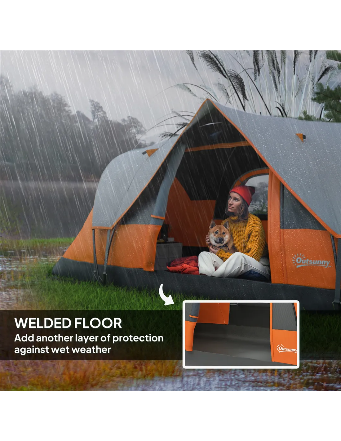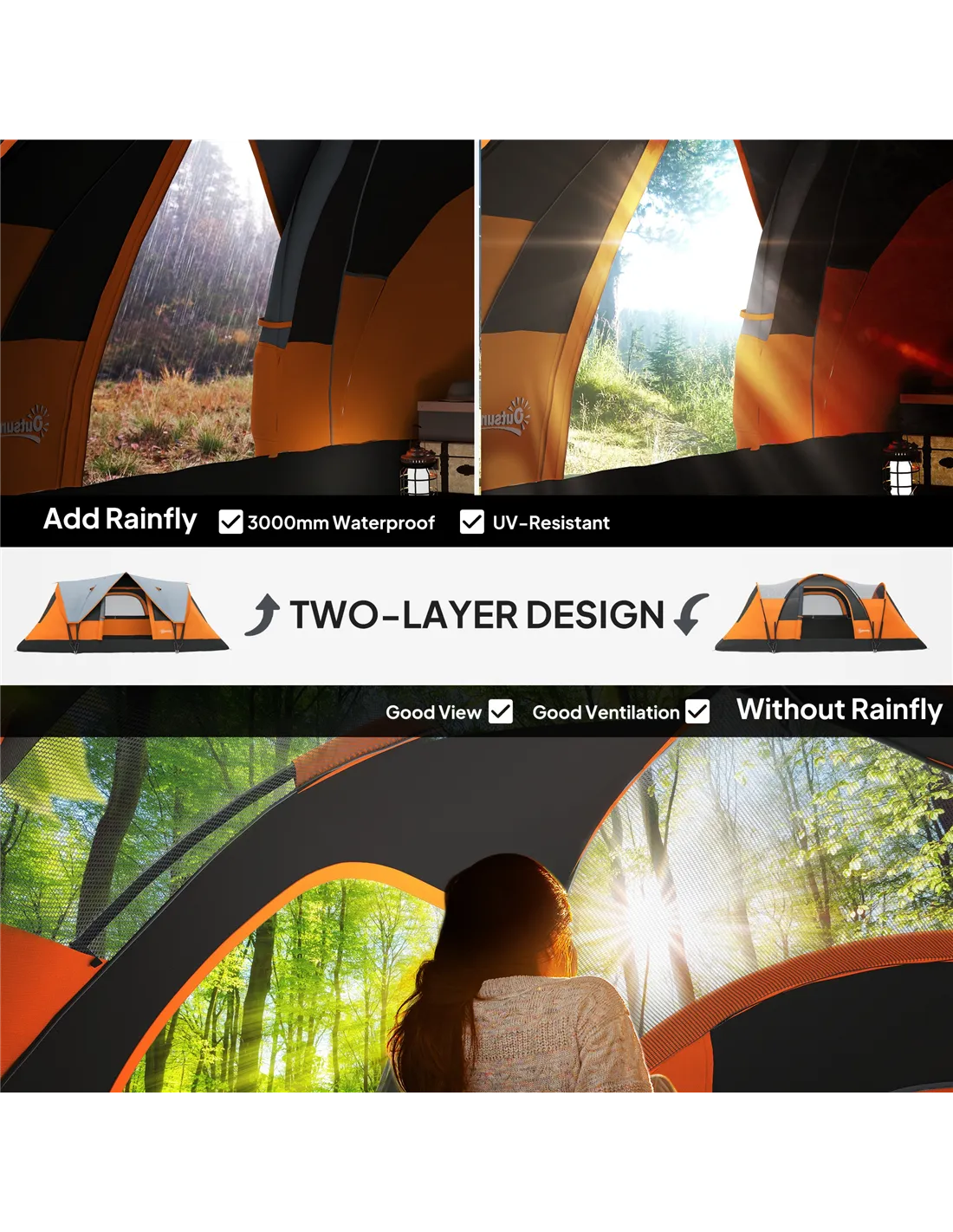 - Two-tier design, consisting of the main tent and the removable top cover, providing extra protection against mild rain, wind and sun keeping the inside dry (do not leave your contents against the tent wall)