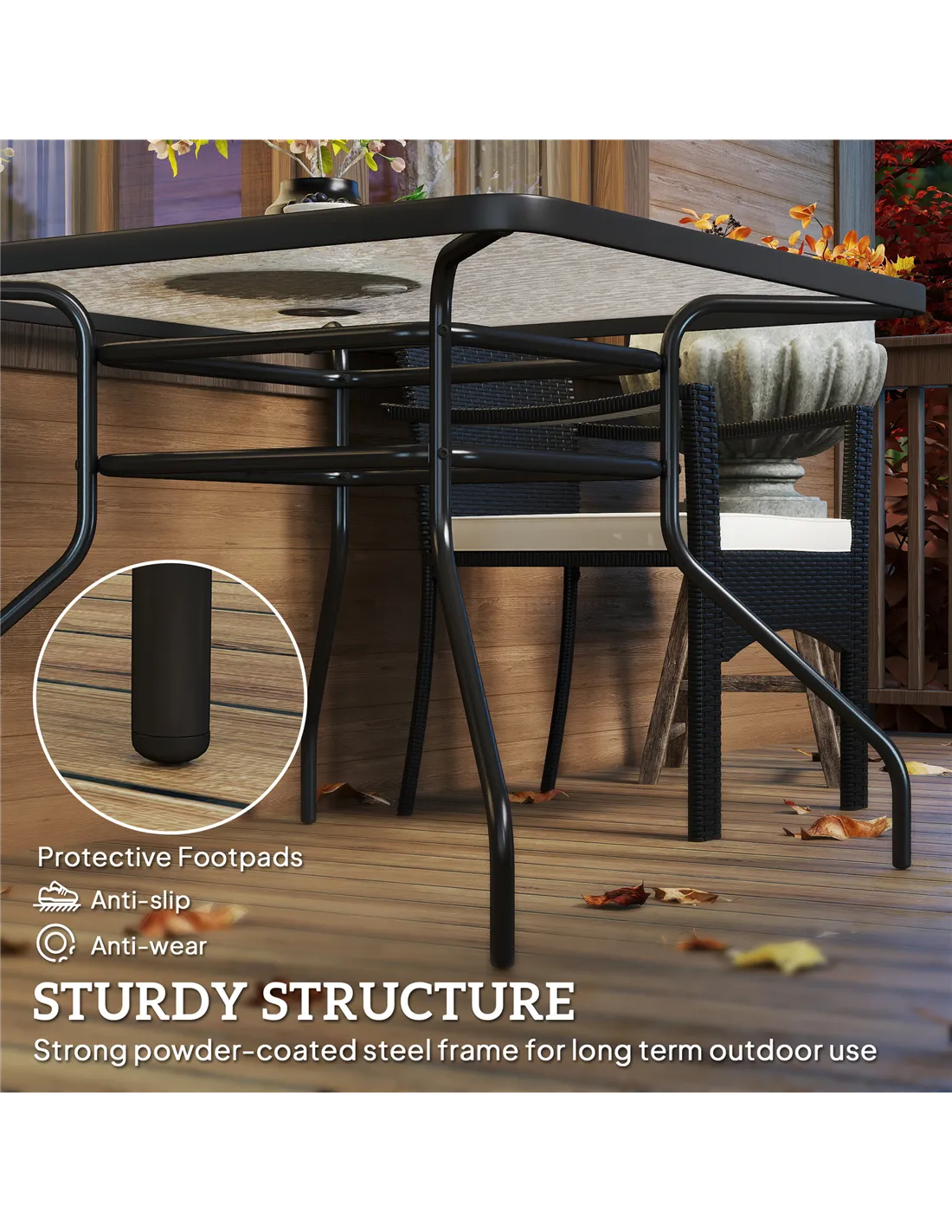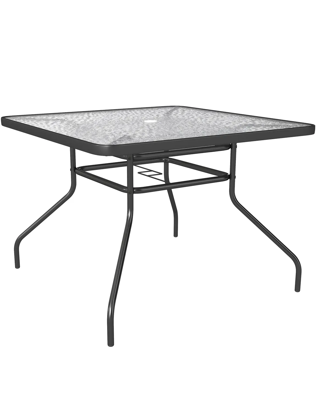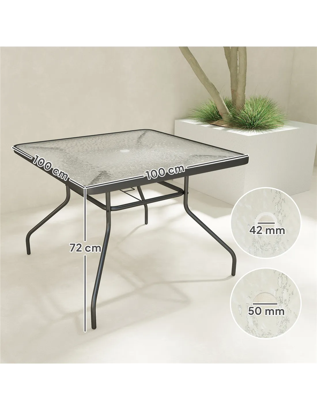 Outsunny Square Garden Dining Table with Tempered Glass Top & Umbrella Hole, 100 x 100 cm
