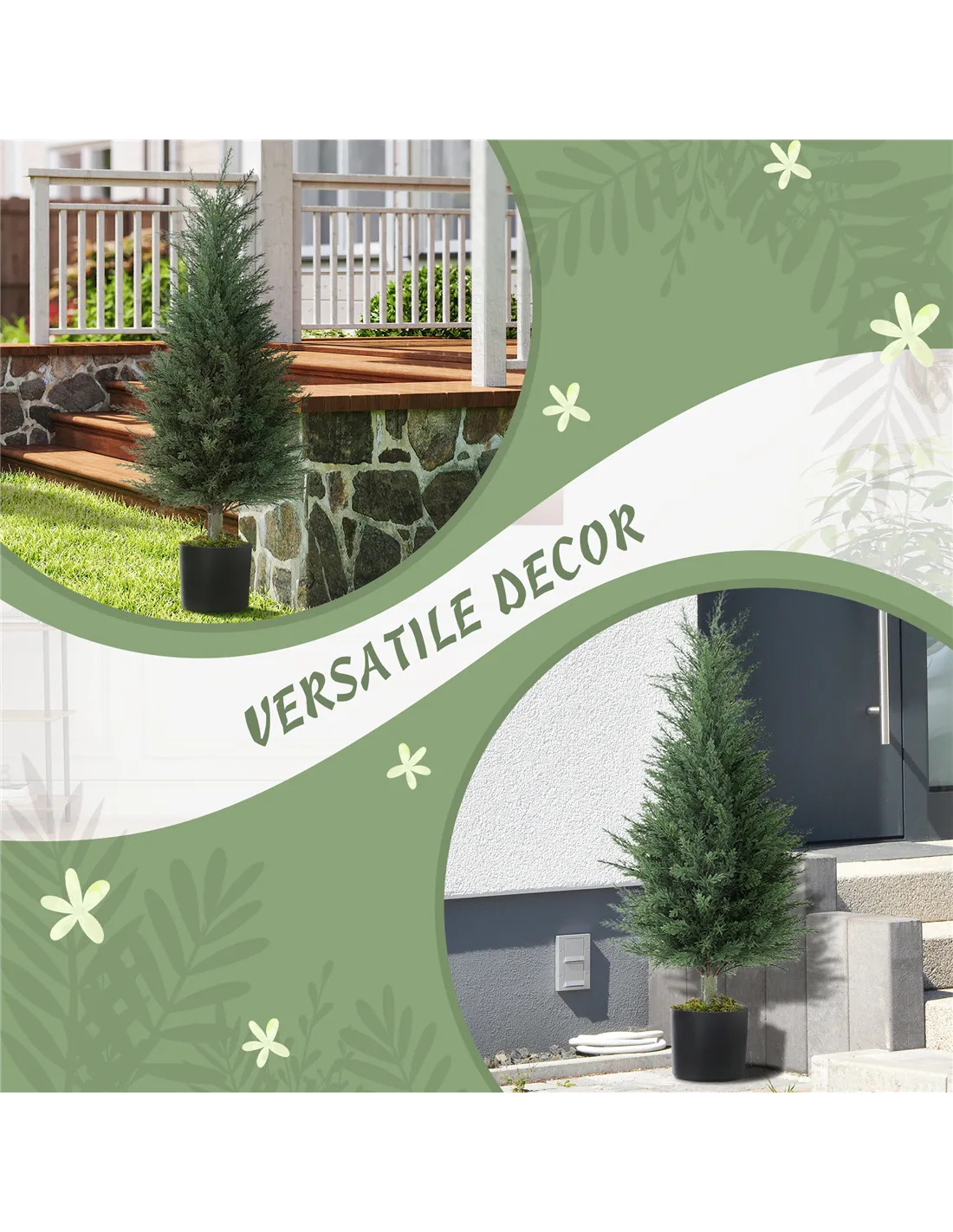HOMCOM Set of 2 Decorative Artificial Plant, 90 cm Cypress Tree with 362 Leaves in Pot, UV-Resistant Plastic Fake Tree for Indoor Outdoor Home Office