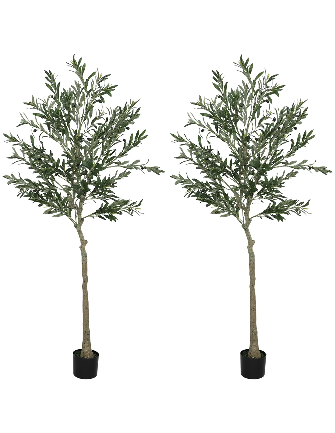 HOMCOM Set of 2 6ft/ 180cm Decorative Artificial Plant, Silk Olive Tree with 900 Leaves and 40 Olive Fruits in Pot, Fake Plant for Home, Office, Living Room, Indoor Decor