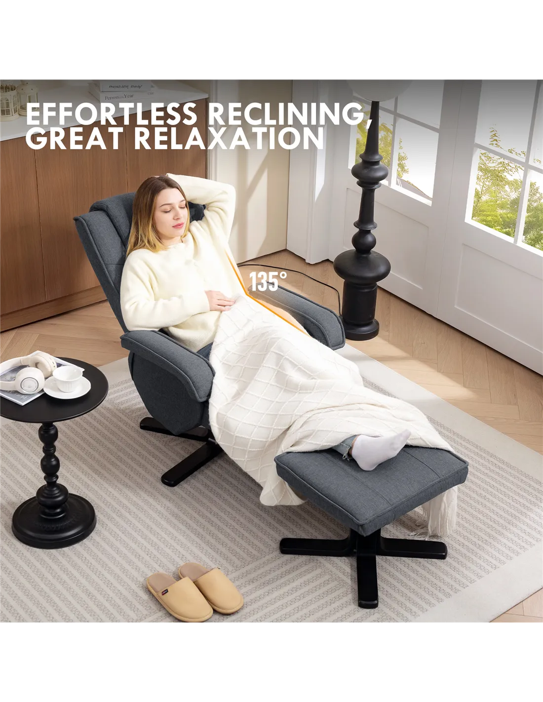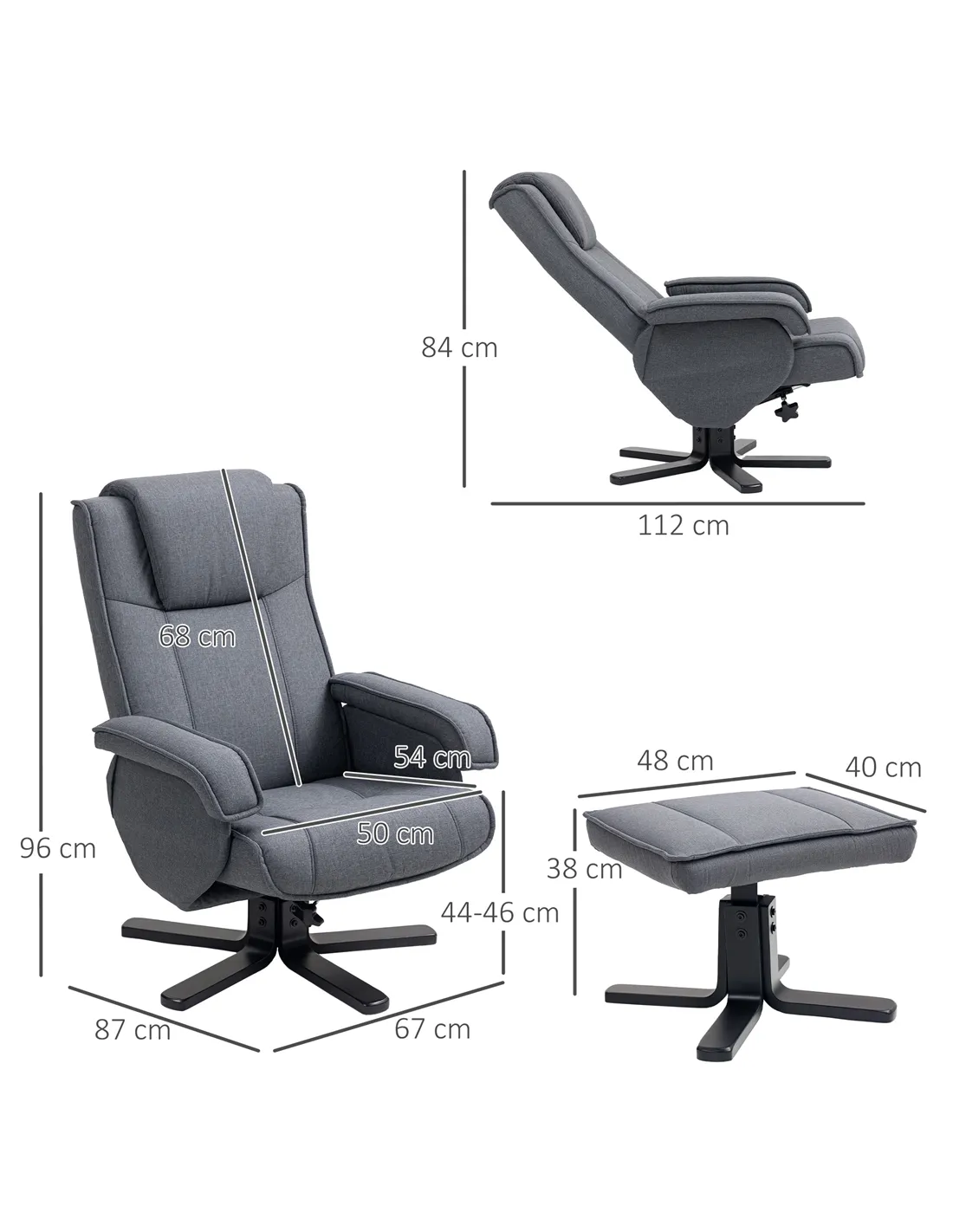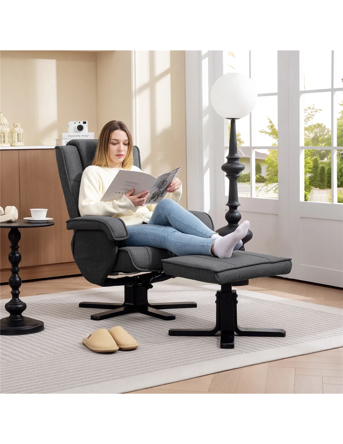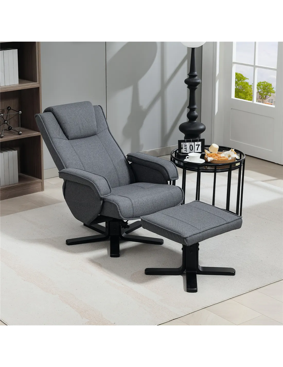 Discover relaxation anew with the HOMCOM Recliner Chair and Footstool. Enjoy limitless comfort as it reclines up to 135° and rocks gently, suitable as your new fireside chair or comfy living room armchair. The 13 cm thick seat padding supports every inch from back to arms, while the 360° swivel feature adds a fun twist to your lounging experience.